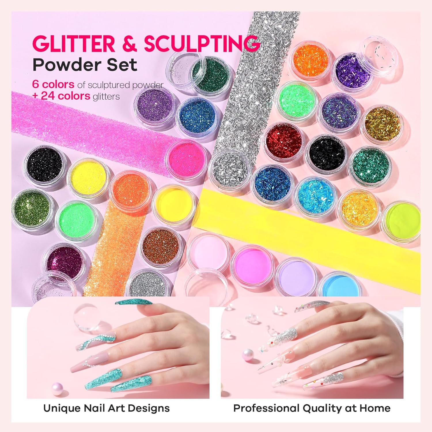 - Professional All-in-One Acrylic Nail Kit for Beginrs, 3 gel polishes, high-speed drill (20,000 RPM), portable UV lamp, 15 professional brushes, glitter, rhinestones & all essential tools. Perfect for both first-timers and nail techs, our kit makes acrylic application effortless with its intuitive design and premium quality components.