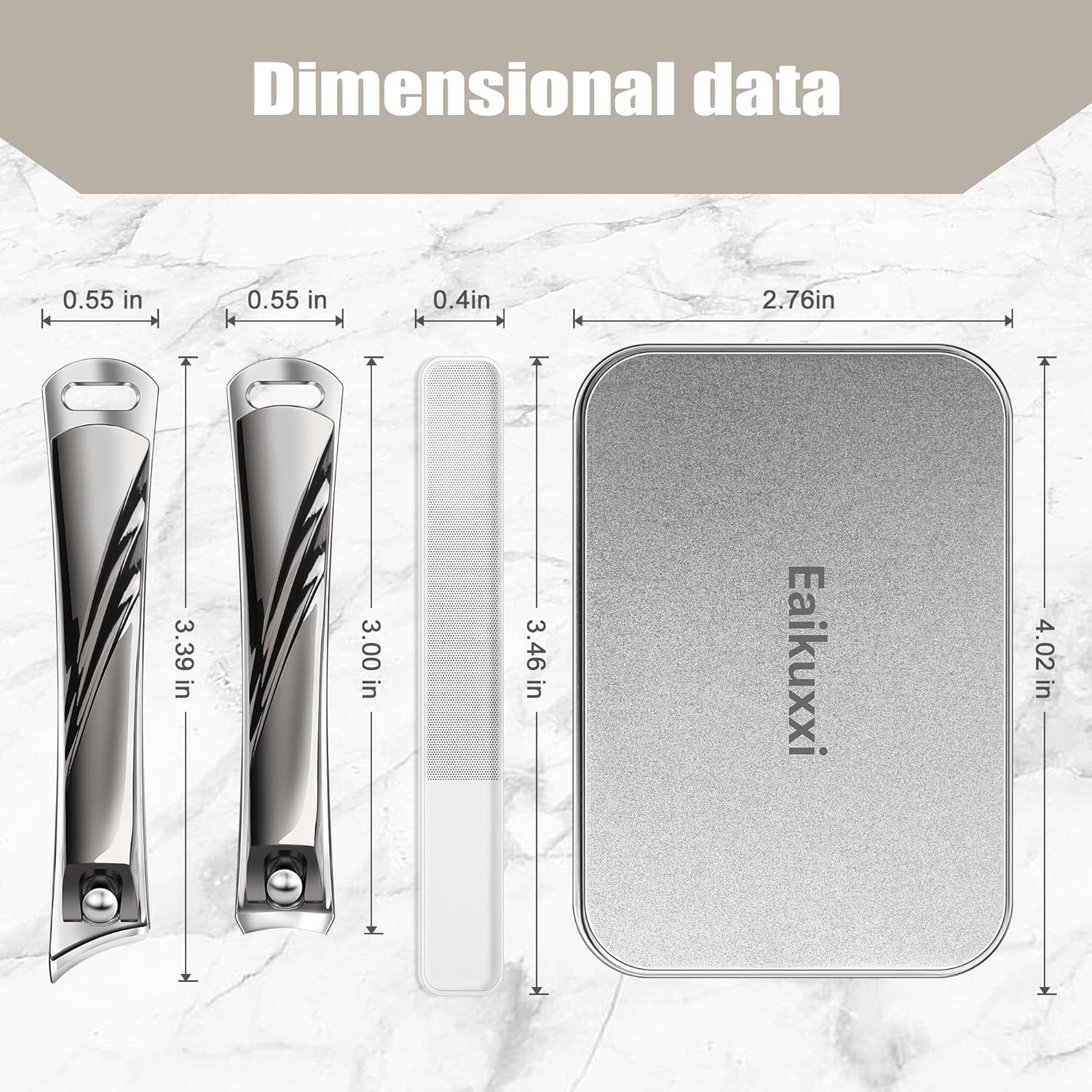 - Package Contents :1 pcs Exquisite iron box,1 pcs nano nail file,1 pcs curved blade nail clippers,1 pcs slant edge blade nail clippers.