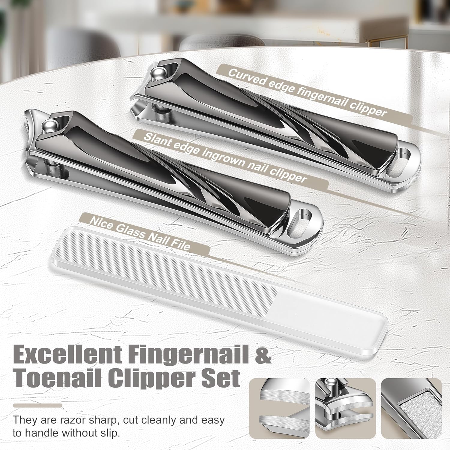 - Sharp Blade : our set is built to handle various nail care needs, The clippers will make your nails perfectly cut and well groomed, with the sharp and precise blade, the cutting edge will not tear or split nails.