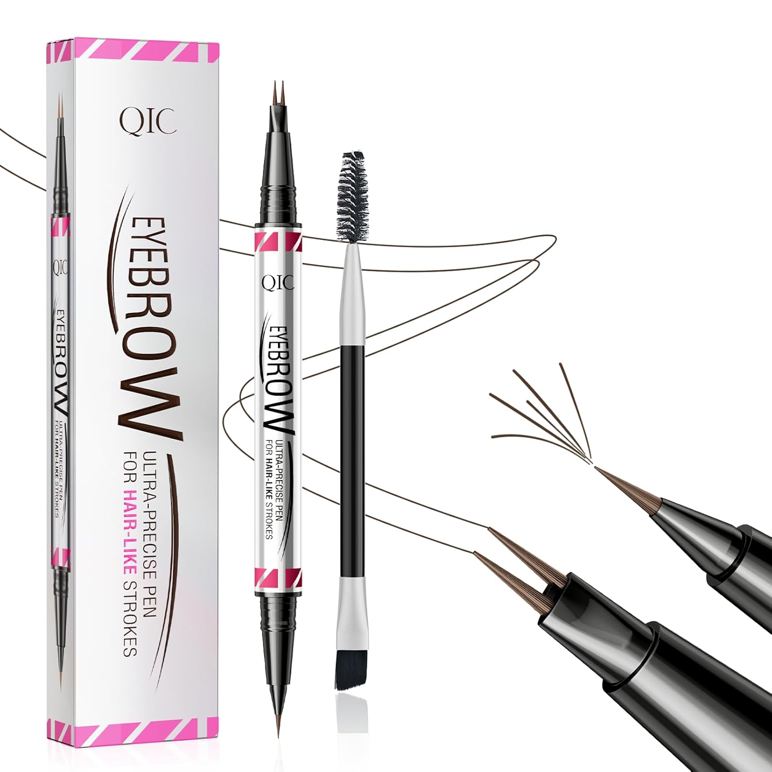 Microblading Eyebrow Pen,2-in-1 Dual-Ended Eye Brow Pencil with 2-Fork-Tip and Precise Brush-Tip, Waterproof Long Lasting Eyebrow Pen for Natural Hair-Like Brows(Dark Brown)