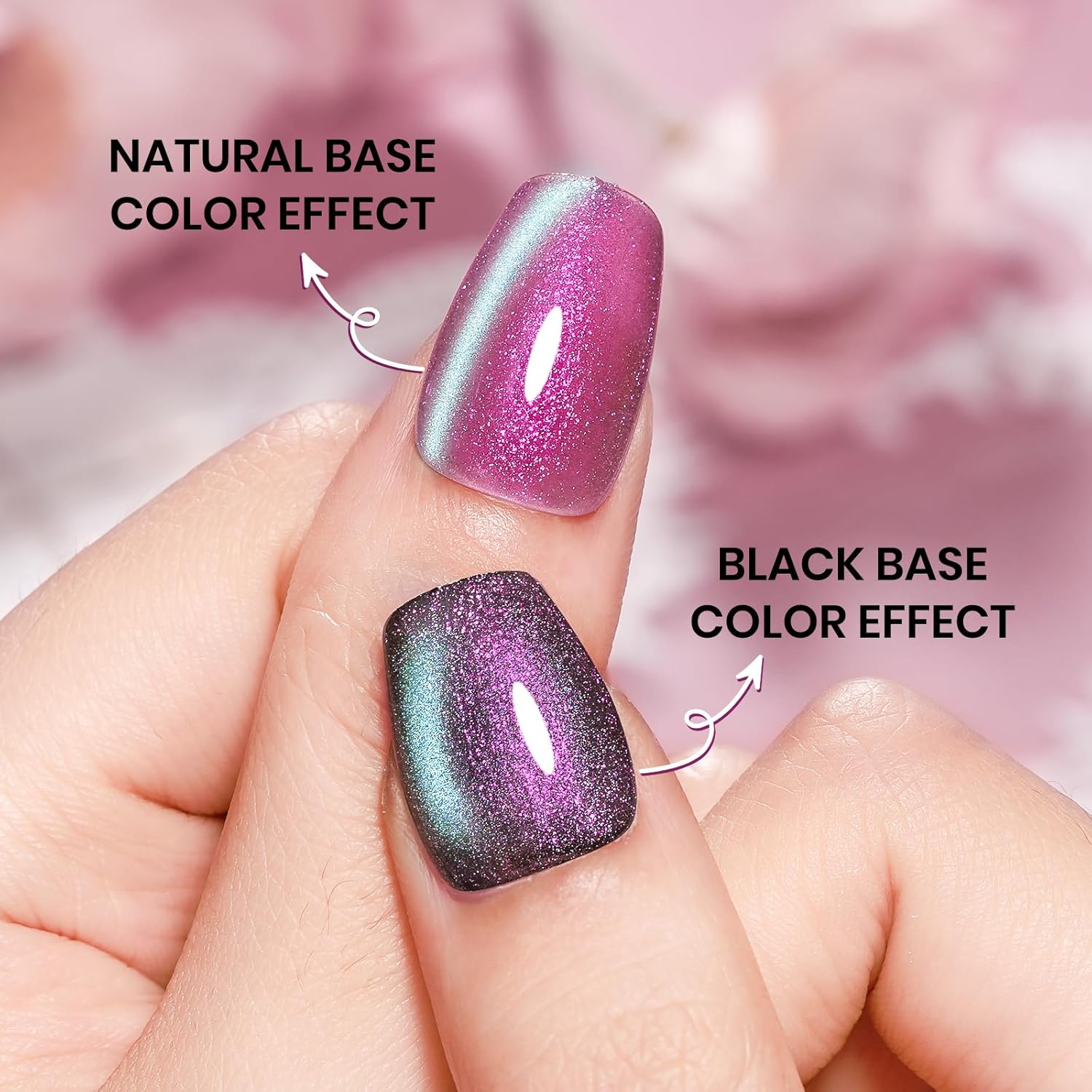 - Aurora Cat Eye Gel Polish: 1*15ml(0.5fl oz) aurora pink cat eye gel nail polish with 1pc magnetic stick. Suitable for all occasions to wear, both daily and special occasions can show a unique style.