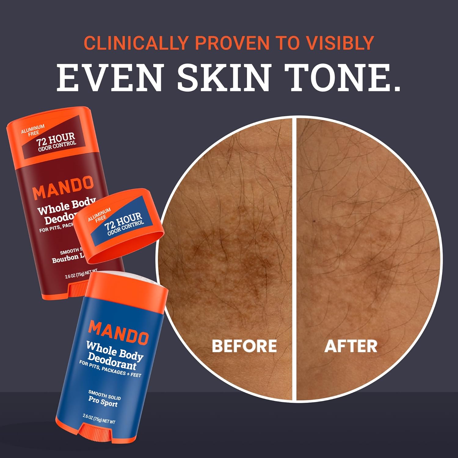 Mando Whole Body Deodorant For Men - Smooth Solid Stick - 72 Hour Odor Control - Aluminum Free, Baking Soda Free, Skin Safe - 2.6 Ounce (Pack of 2) (Bourbon Leather & Pro Sport)