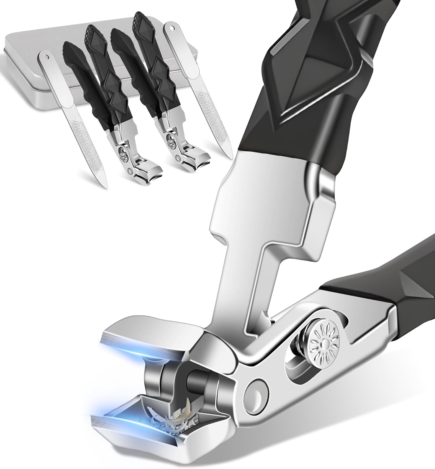 - Ergonomic Design: Say goodbye to hand strain! Our ergonomic design ensures a comfortable, non-slip grip, offering precise control for all nail types; The nail clipper set for men includes 2 angled-head toenail clippers and 2 stainless steel nail files