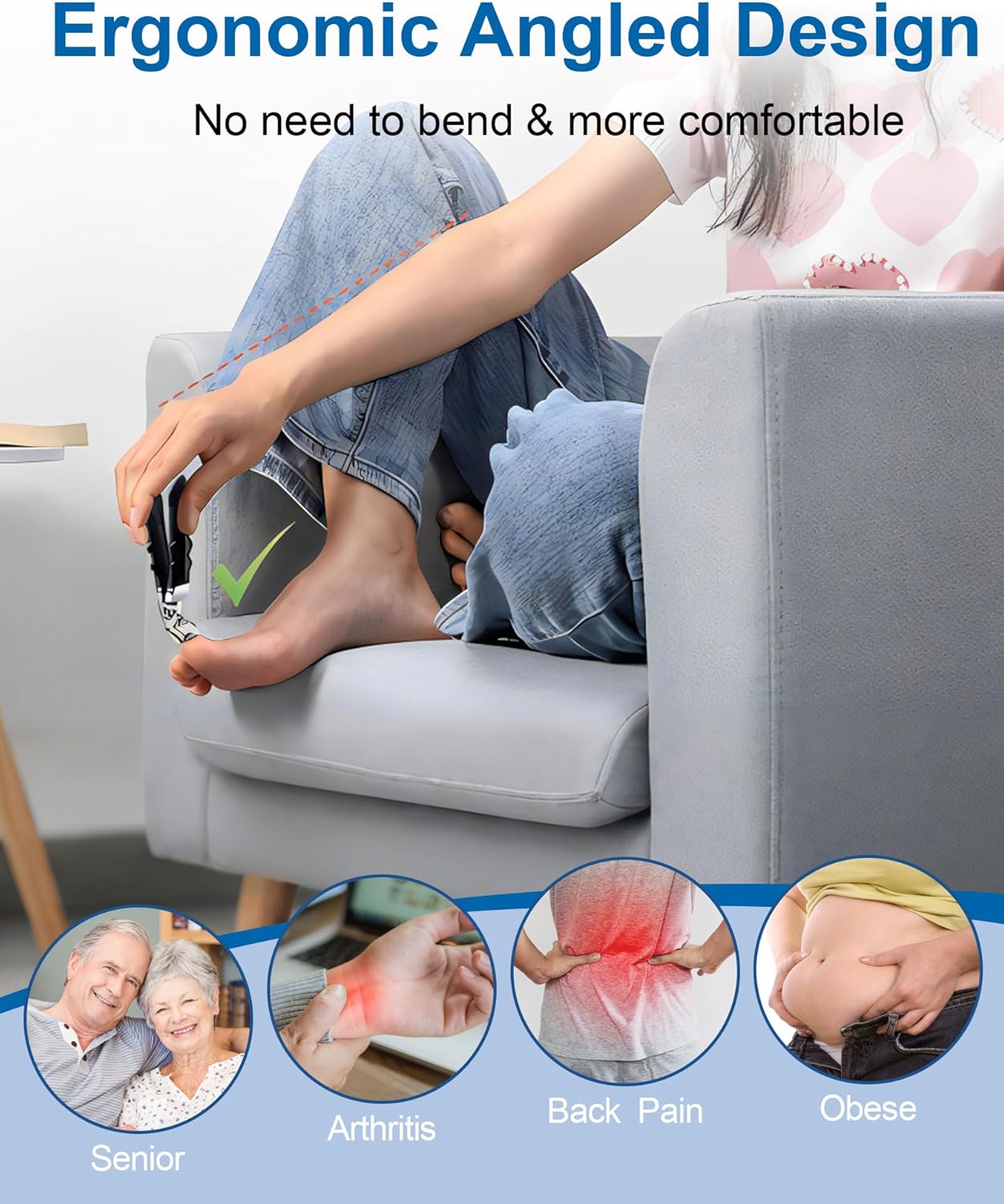 - Angled Head for Easy Access: The unique angled head design allows for better visibility and control, making it easier to reach and trim nails at difficult angles; It is the best toe nail clipper for the pregnant, eldly, lumbago and obese people