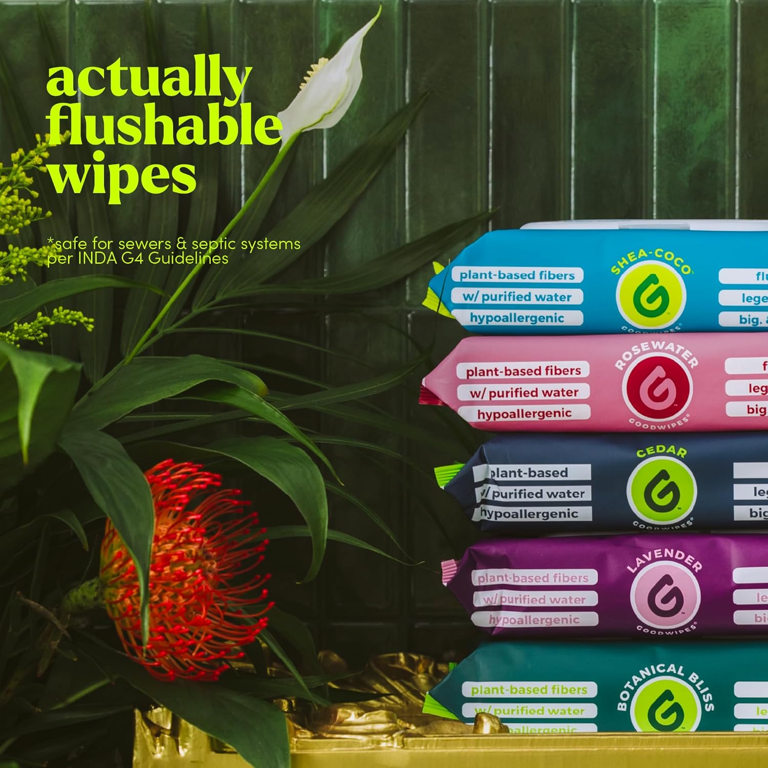 goodwipes Flushable Butt Wipes - Extra Large Adult Wet Wipes For Women & Men - Bathroom Essentials - Sewer & Septic Safe - Shea Coco & Botanical Bliss, 300 Count (6 Packs)