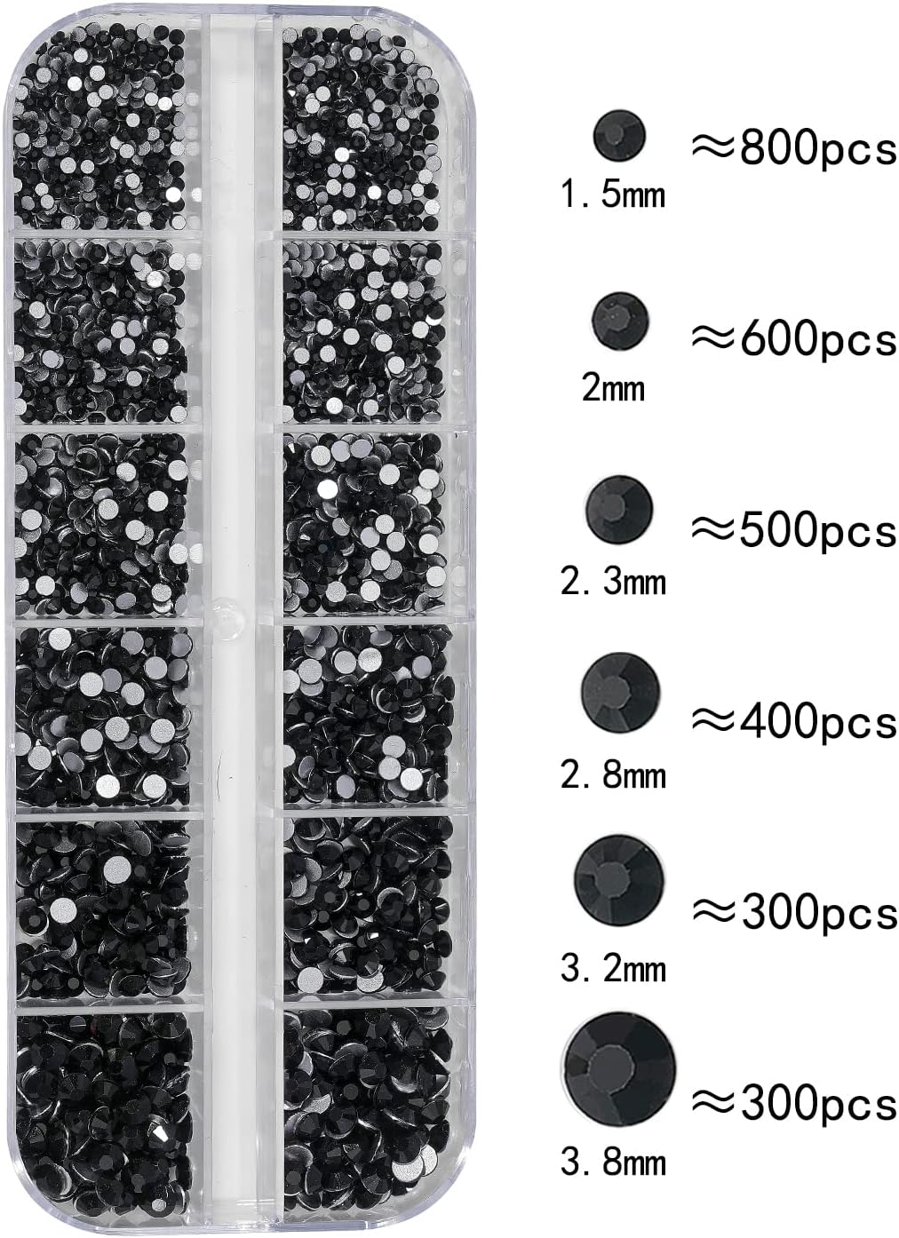 - ★Multi sized - Black for nails decorations accessories are perfect for creating 3d nail Art or decorating jewelry, makeup, body Art, diy crafts, wedding dress or shoes, cell phone cases, glasses, greeting cards, bags, guitars, scrapbooks, etc., the mixture of different sizes makes it easier to achieve different designs of nail art,which add sparkle and glamour to your crafts.
