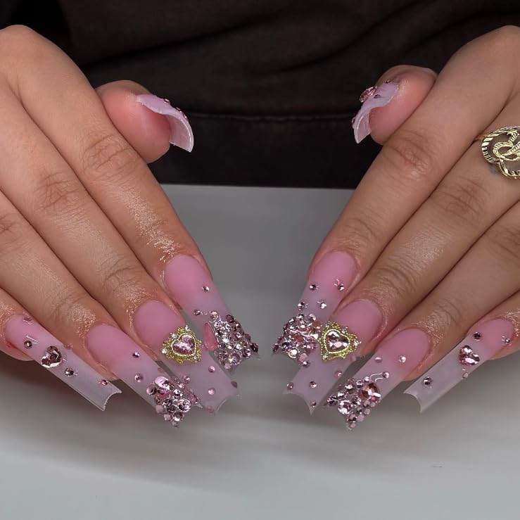 Nail Rhinestones - 3D Multi Shape Size, Flat Back, Manicure Rhinestones Charms, Crystal Pink Gems, with Kit, for Nail Art, Bedazzling Acrylic Nails, DIY Decor