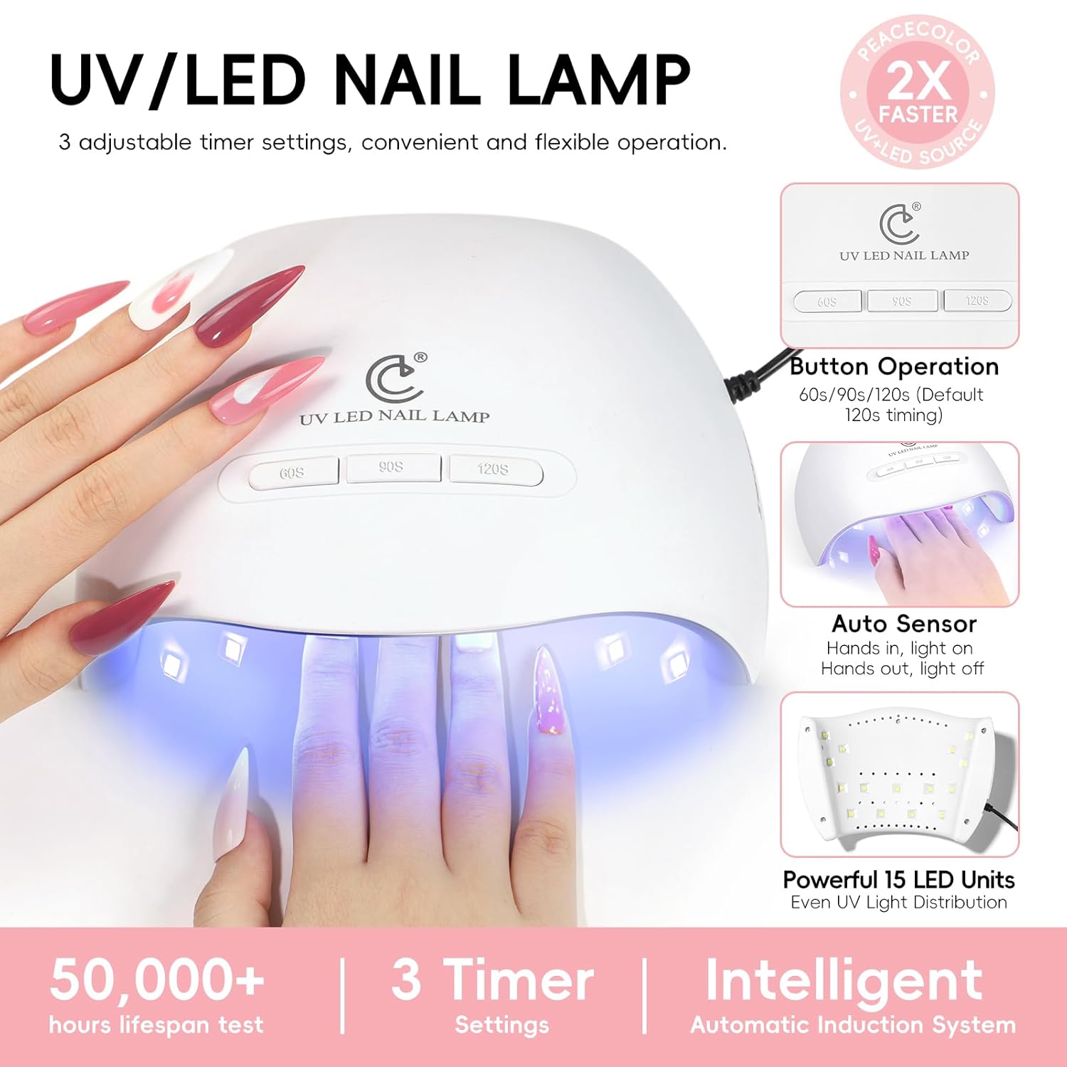 Peacecolor 39pc Gel Nail Polish Kit with U V Light, Pink Brown Nude Dark Red 22 Colors Pastel Gel Polish Kit with Base Top Coat Matte Glossy French Nail Art for Beginners Manicure DIY