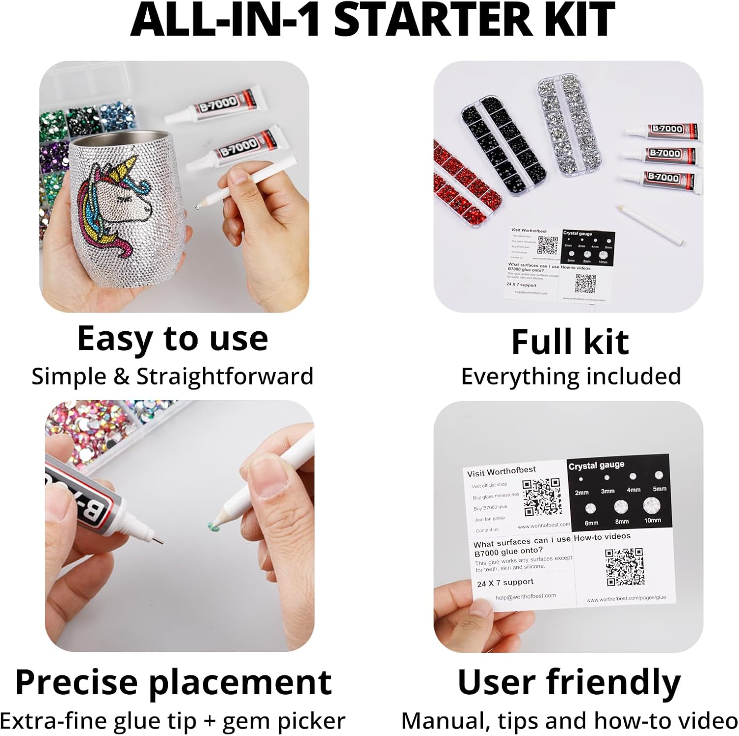 - Easy to Use -- This kit is designed to be straightforward, and versatile for various crafting projects. The manual is user-friendly and beneficial for both novice and experienced crafters. The complete and durable tools are suitable for precisely applying rhinestones to create intricate designs, with no additional tools required. Rhinestones are easy to apply and remove. The sturdy container with 34 grids keeps all rhinestones organized by size and color, making them easy to store and access