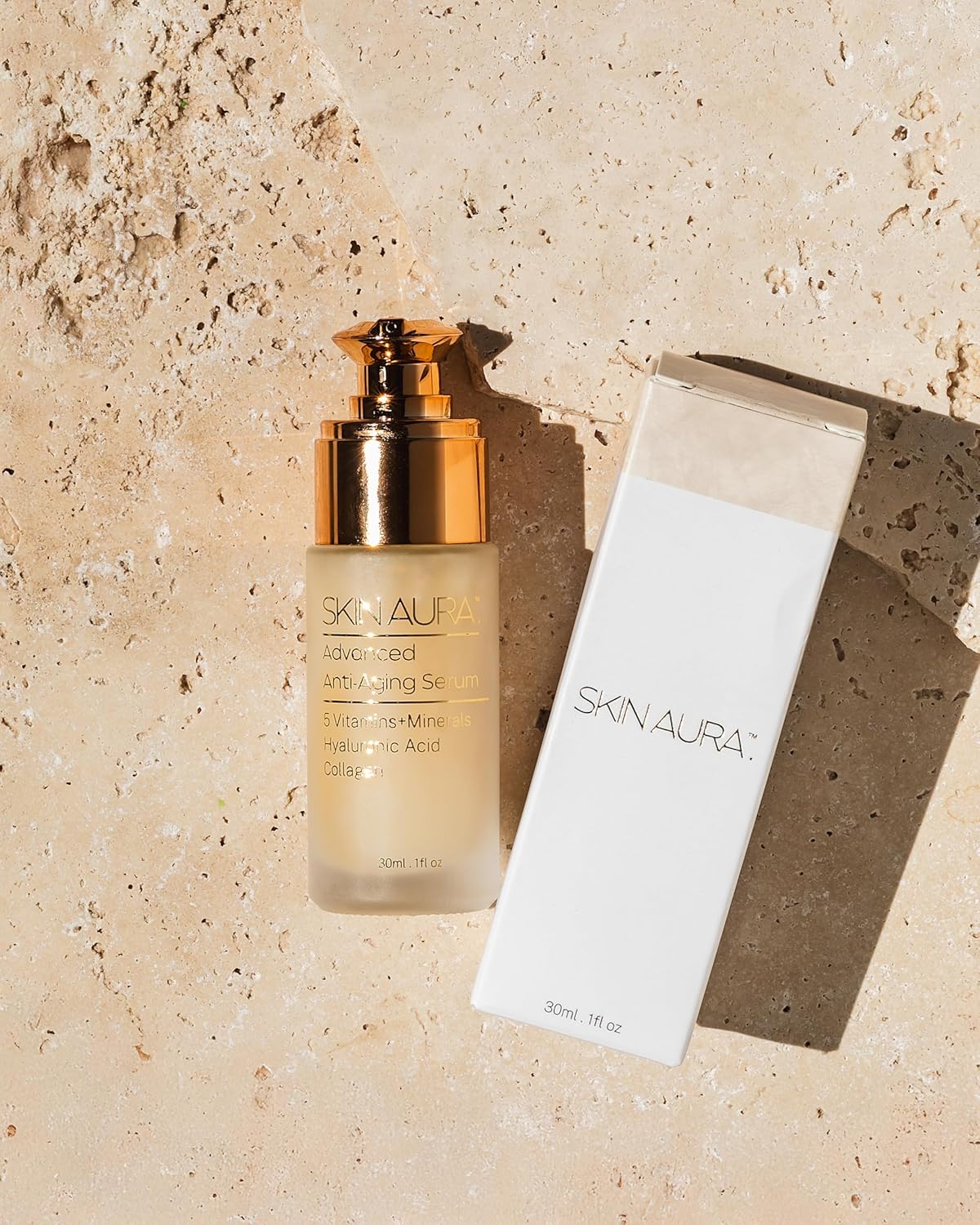 SKIN AURA Advanced Anti-Aging Serum - All-In-One Plant Derivative Formula Improves Wrinkles, Fine Lines & Age Spots with 5 Vitamins + Minerals, Hyaluronic Acid & Collagen Peptides - 30ml (1oz)