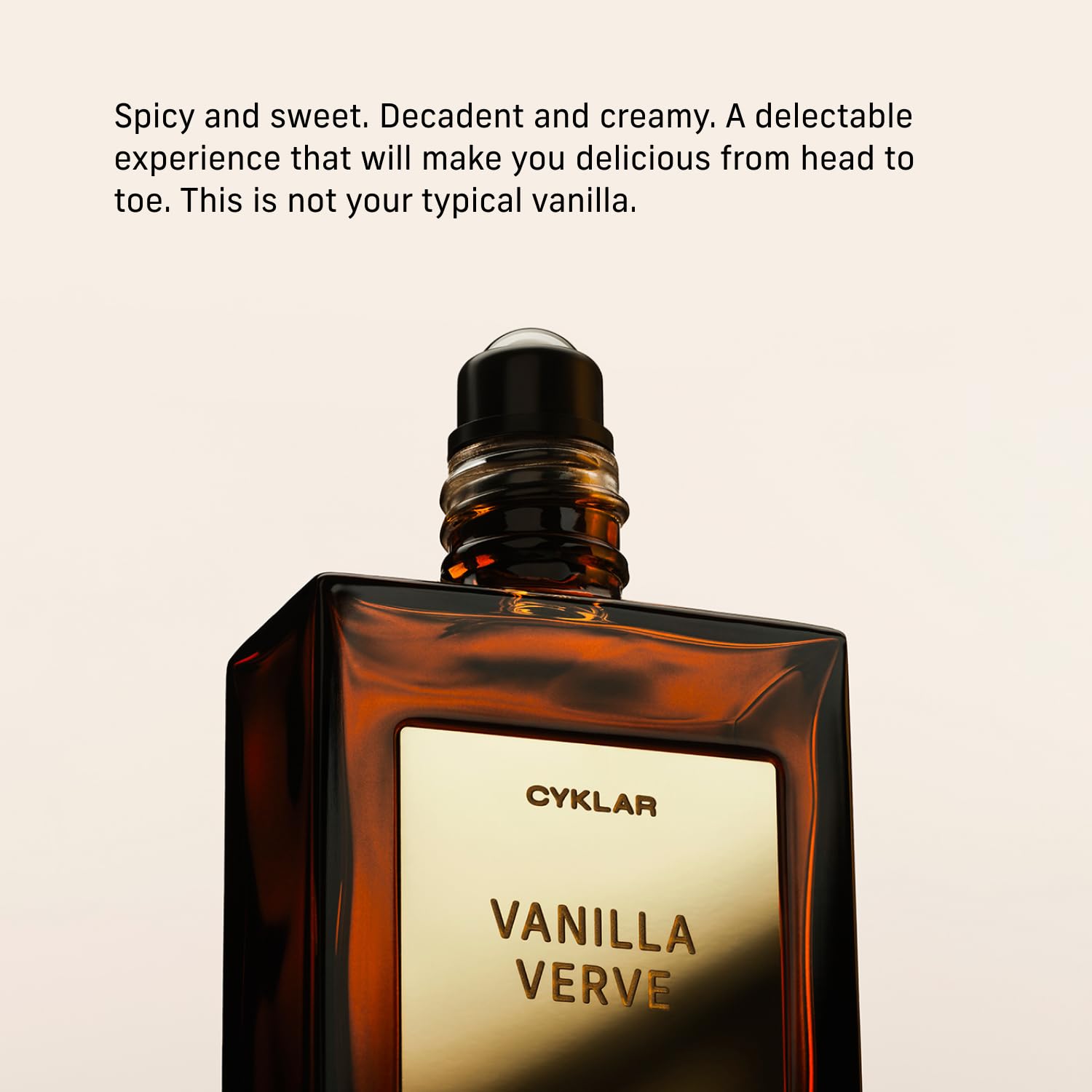 Perfume Oil Roll-On. Travel-Friendly Vanilla Verve Fragrance with Vanilla, Bergamot, and Amber Notes. Long-Lasting Essential Oil Parfum for Women and Men. 0.5 Fl Oz Scented Rollerball Bottle