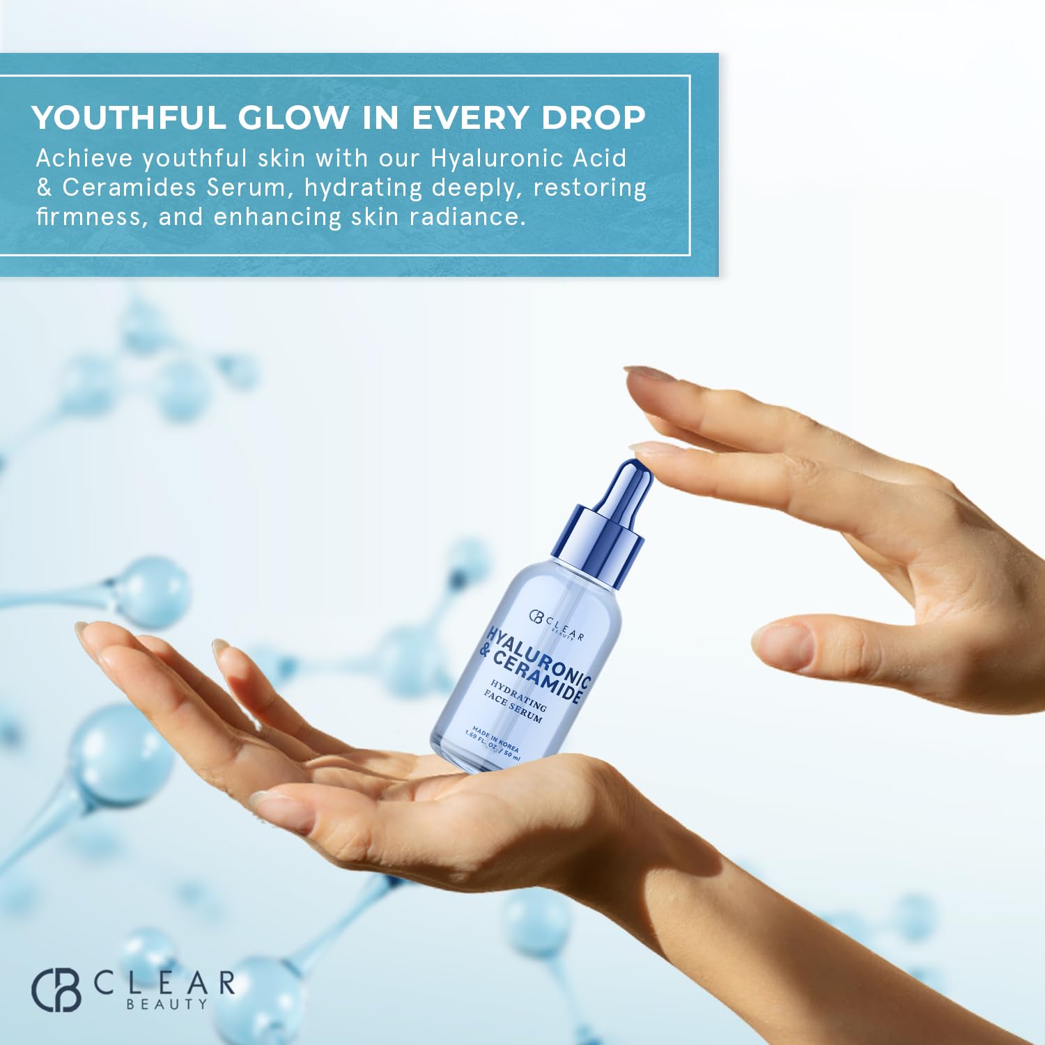 Hyaluronic & Ceramide Facial Serum - Dermatologist Tested, Anti-Aging, Korean Skin Care, Deep Hydration, Plumping & Smoothing - Vegan, Clean Beauty, Cruelty-Free, Non-GMO - 1.69 FL. Oz