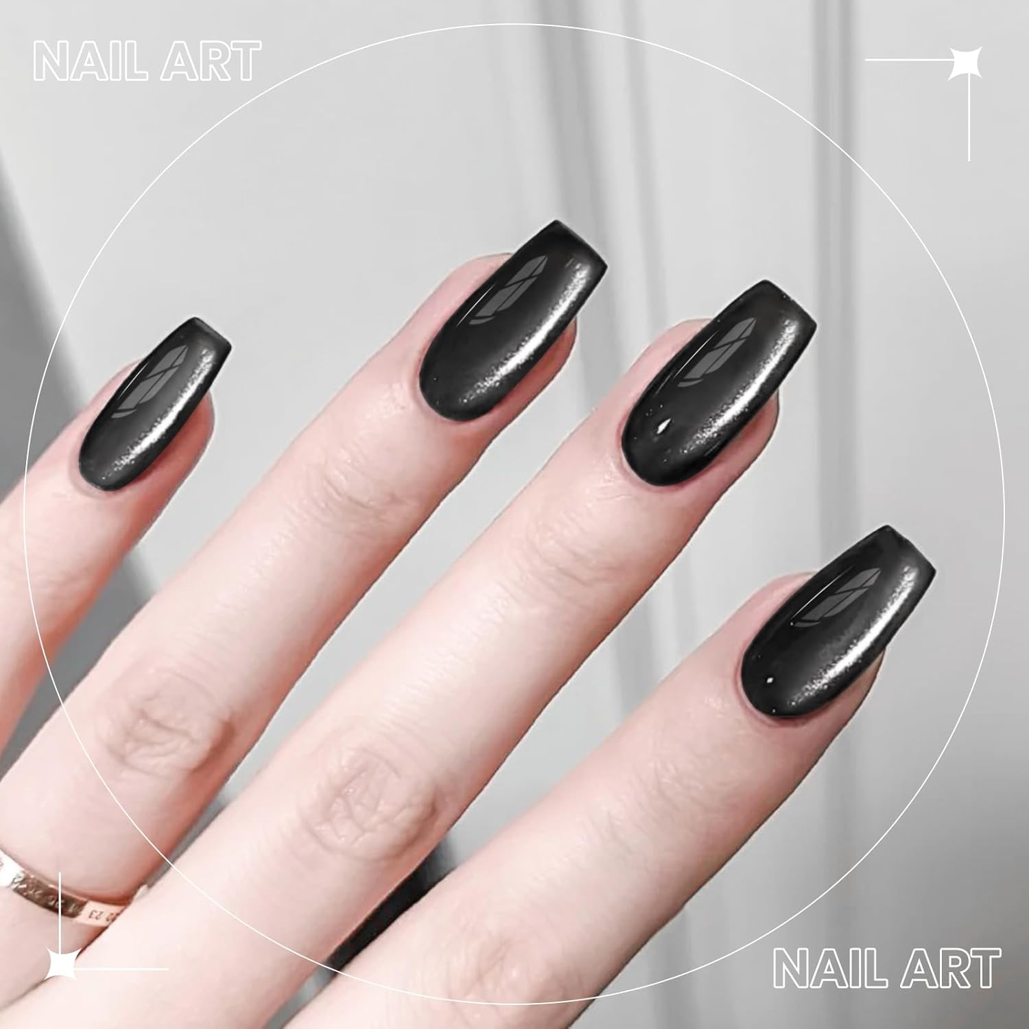 - BLack Cat Eye Gel Polish: 1*15ml(0.5fl oz) moonlight glassy cat eye gel nail polish with 1PC magnetic stick. Achieve a flawless application with no black spots, allowing the cat eye effect to shine through beautifully