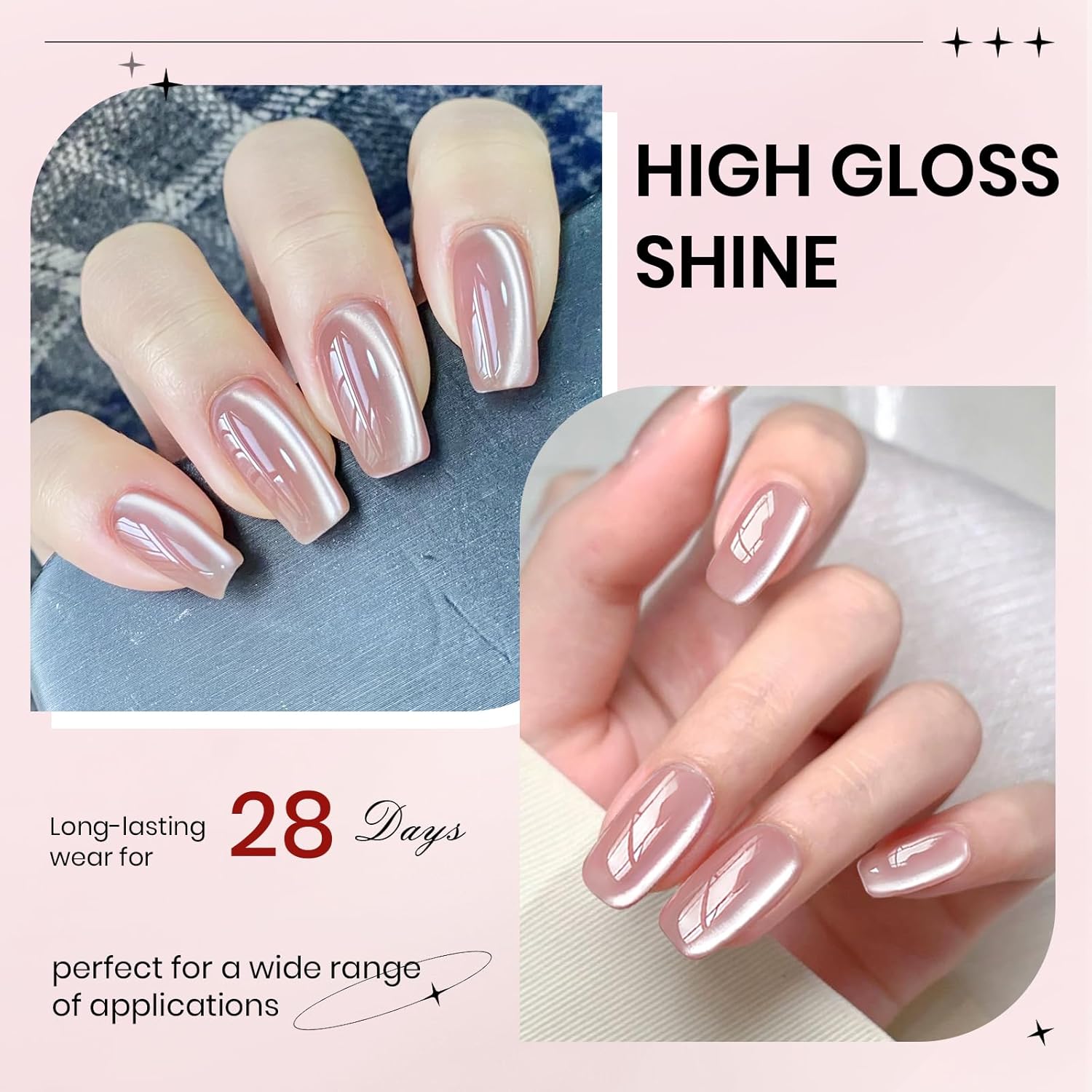 - Upgrade Your Nail with Cat Eye Gel: This moonlight glassy cat eye gel polish delivers a glass-like shine, leaving your nails looking clear and bright. With its upgrade cat eye effects, your nails will stand out from the crowd