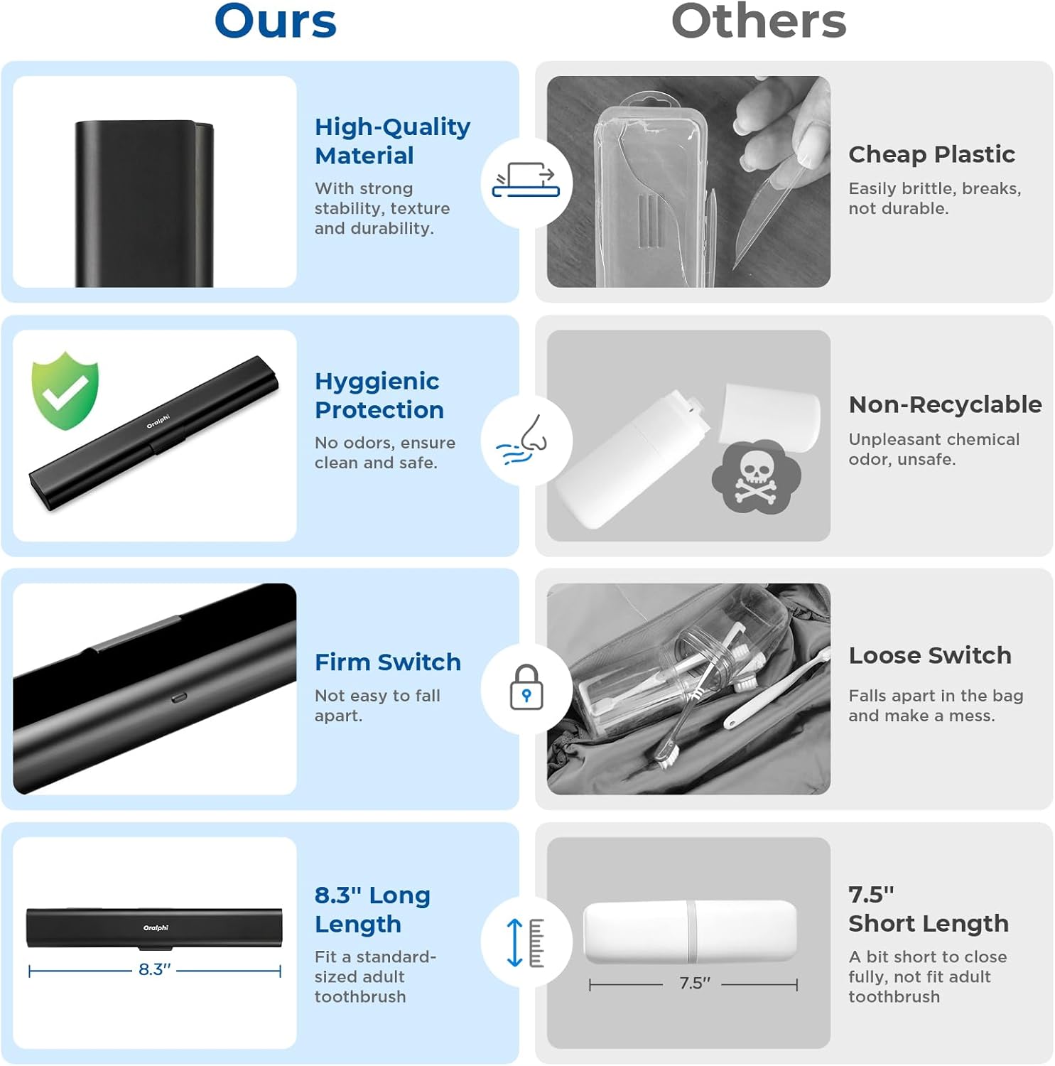 - High-Quality Material: Made of food-grade durable aluminum alloy, our travel toothbrush case is safe, non-toxic, odorless, and rust-free. Say goodbye to the common problem of the brittleness of plastic, as our toothbrush container stands the test of time with its robust build. Ensures your toothbrush stays clean and safe