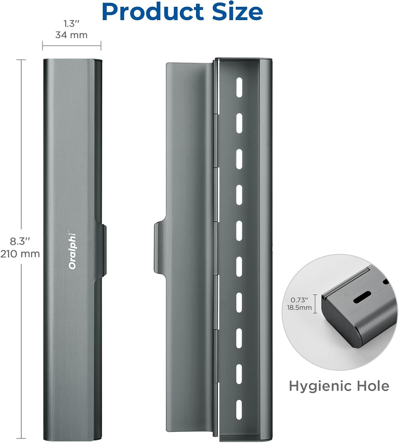 - Package Included: You will get 1 pack aluminum toothbrush box, thoughtfully designed to fit most manual toothbrushes with dimensions of 8.3 x 1.3 x 0.7 inches (L x W x H). The perfect size for your needs, without compromising on style(Not for electric toothbrush)