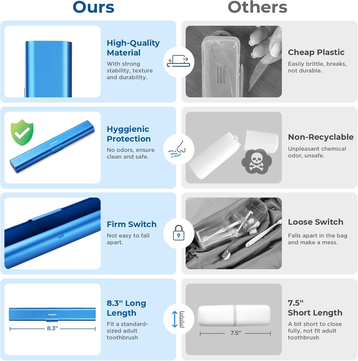 - High-Quality Material: Made of food-grade durable aluminum alloy, our travel toothbrush case is safe, non-toxic, odorless, and rust-free. Say goodbye to the common problem of the brittleness of plastic, as our toothbrush container stands the test of time with its robust build. Ensures your toothbrush stays clean and safe
