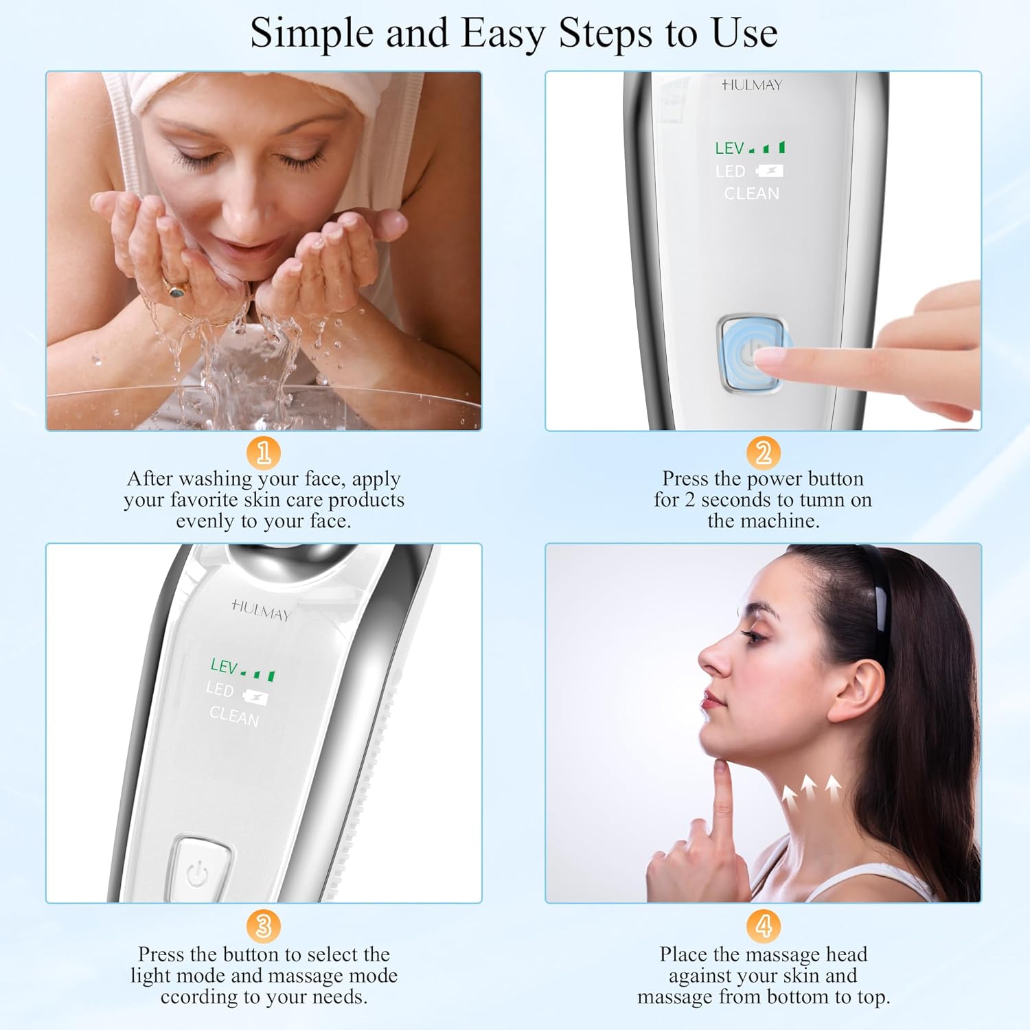 - ✅【Face Massager Tool】Hulmay true beauty glow facial and neck massager delivers triple-action care to address multiple skincare needs, suitable for all skin types. It enhances absorption of serums, lotions, and oils while helping to tighten neck, lift sagging skin, and relax both facial and body muscles