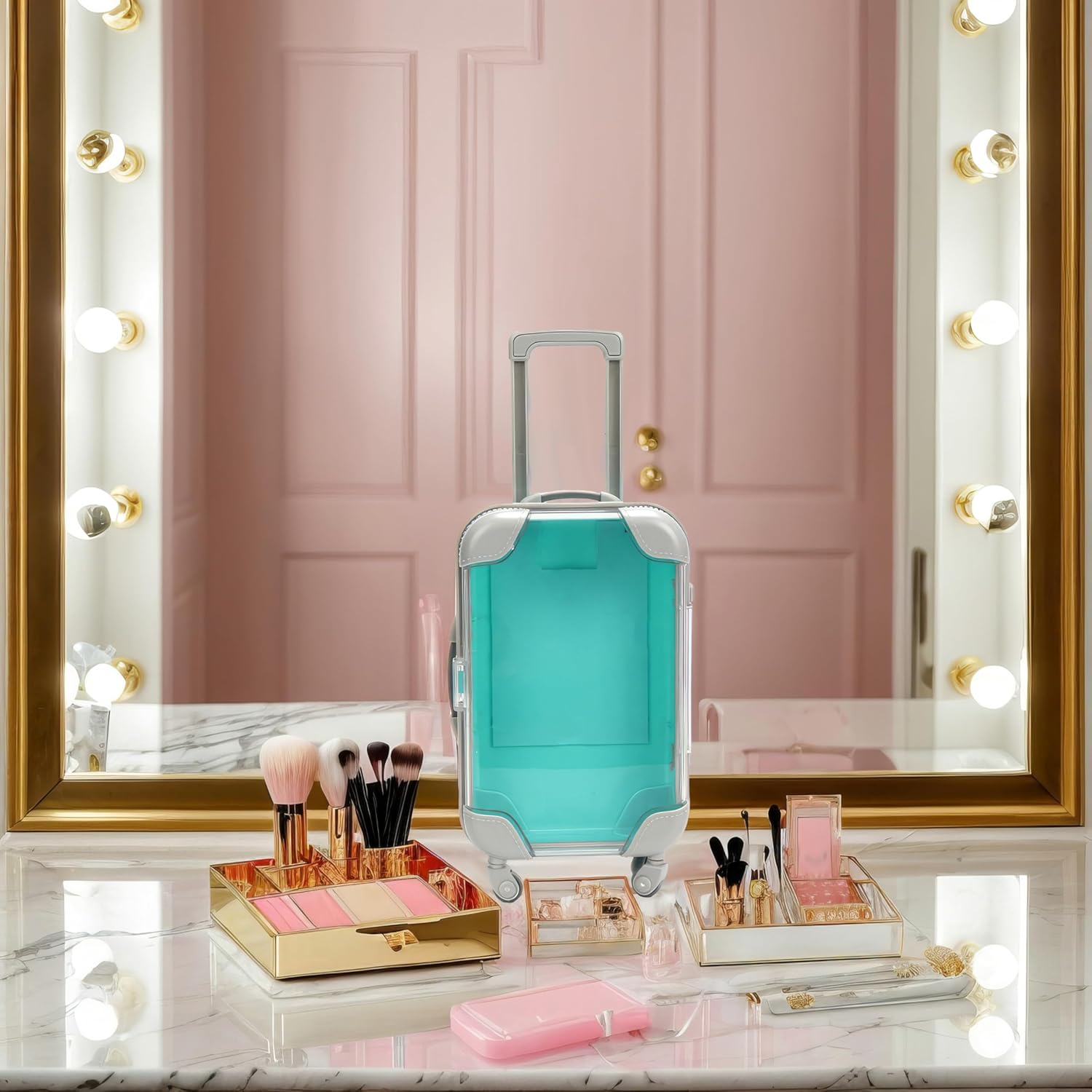 False Eyelash Storage Box, Portable Travel Organizer Mini Luggage False Eyelash Tray Makeup Tool (GREEN)