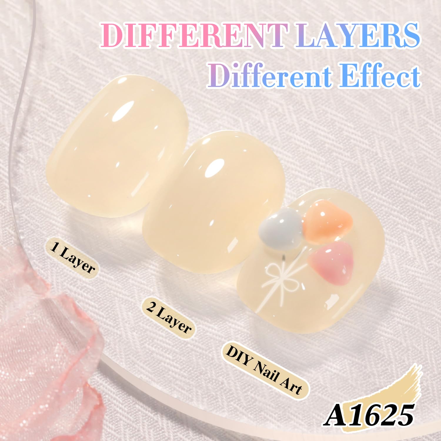 Double Rhythm 0.50 OZ Translucent Gel Polish Same Color Same Bottle Sheer Pastel Neutral Natural Milky 15 ML Jelly UV Nail Art DIY at Home (Yellow-A1625)