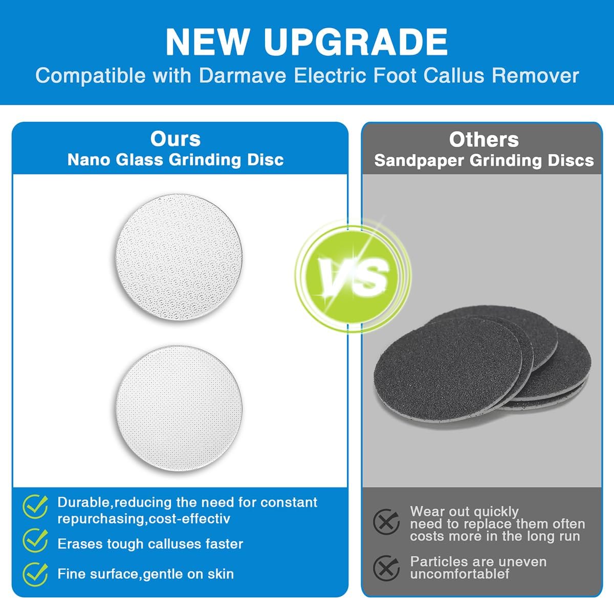 - Nano Glass Grinding Disc Set: 2 Nano Glass Discs & 60 Adhesive Pads Includes two nano glass discs (Coarse for tough calluses, Fine for smooth finishing) and 60 double-sided adhesive pads for easy replacement and consistent results