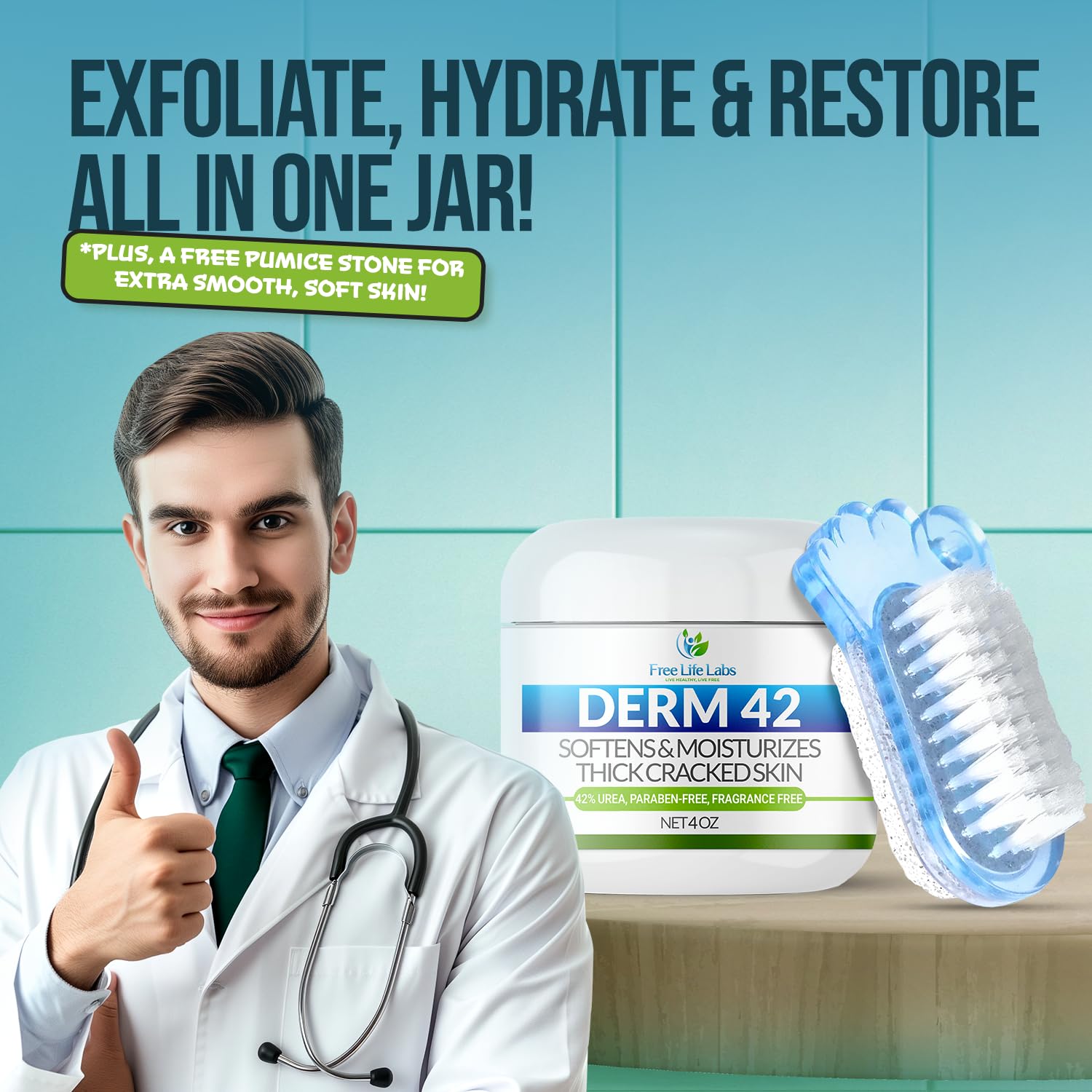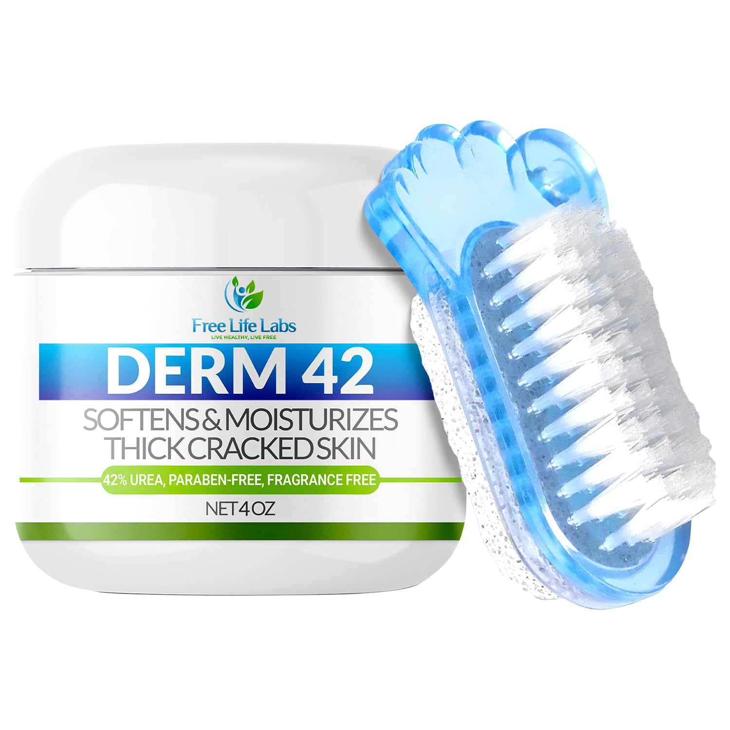 Urea Cream for Feet - Maximum Strength 42% Foot Cream for Calluses and Dry Feet - Free Pumice Stone and Brush - Shea and Mango Butters-Paraben Free-Fragrance Free- 4oz.