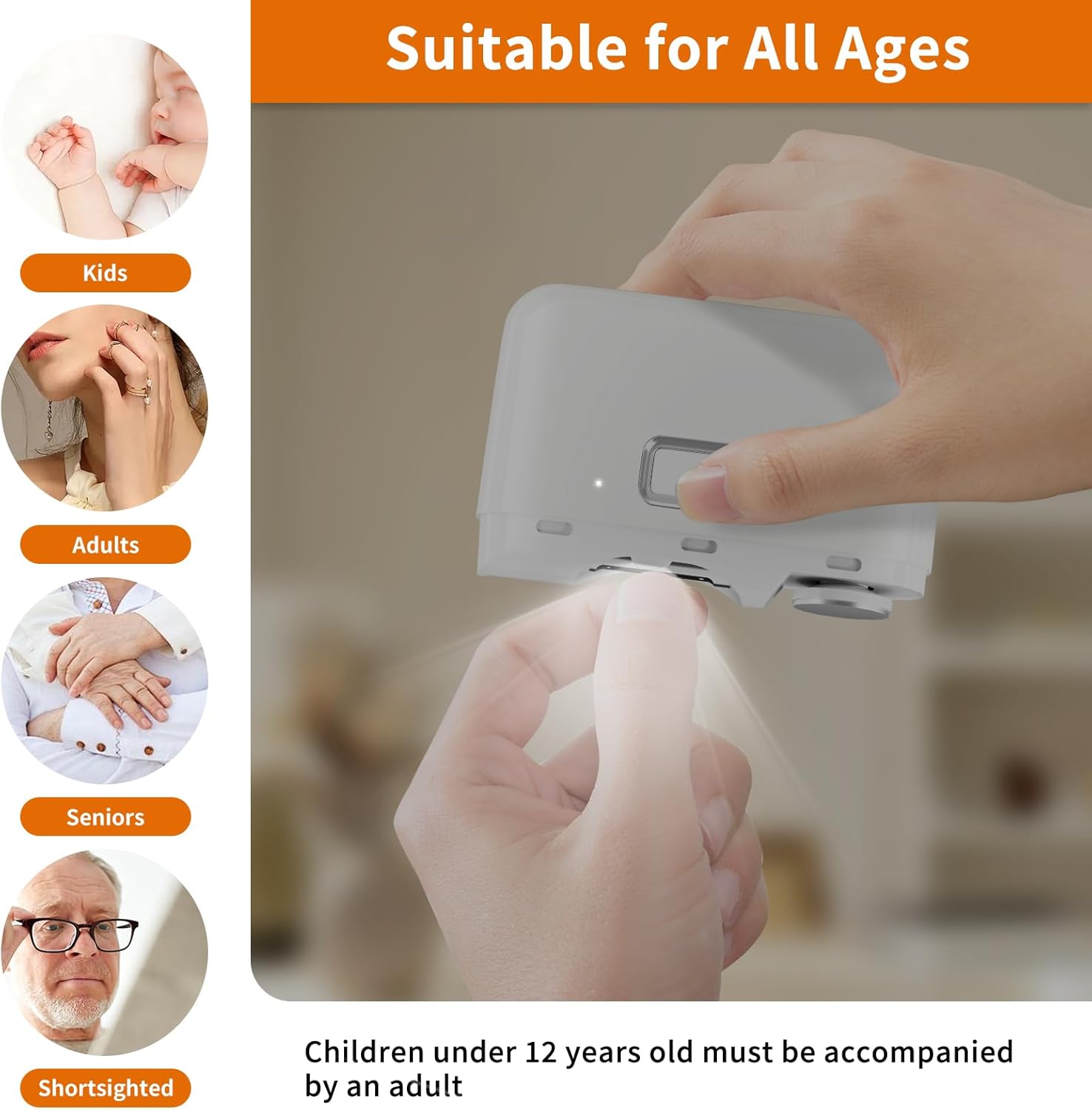 - Mess-Free Debris Collector – Keep your space clean while trimming. This electric nail clipper features a built-in debris collector that neatly stores nail shavings during use. No more messy floors, scattered clippings, or difficult cleanup. Simply empty the container after use for a quick and hygienic nail care routine. Ideal for parents trimming kids’ nails or seniors looking for easy cleanup.