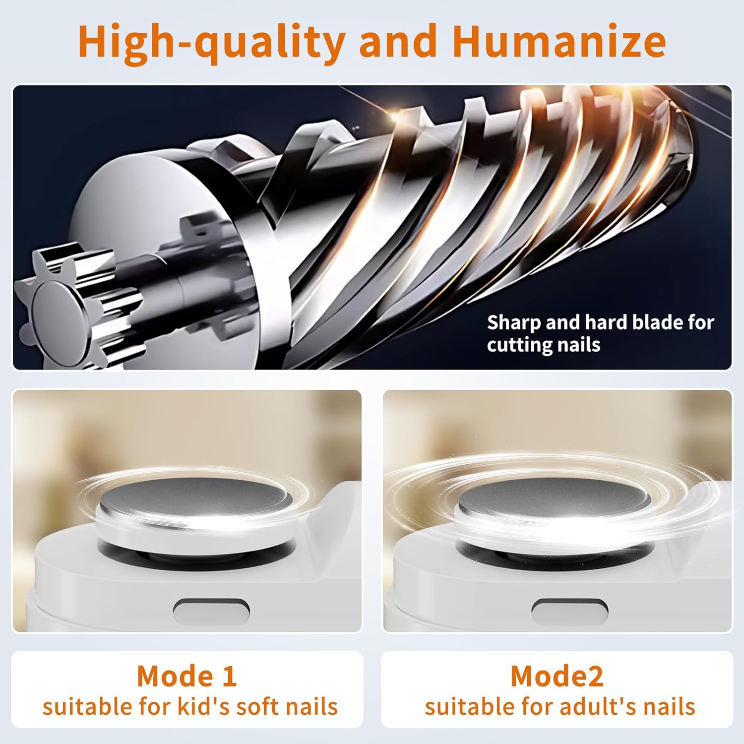 Electric Nail Clipper - 2 In 1 Automatic Nail Clipper with LED Light & Debris Collector – 2 Speed Nail Trimmer & Polisher - Rechargeable Baby Nail File Grinder – Nail Care Tool for Kids/Adults/Seniors
