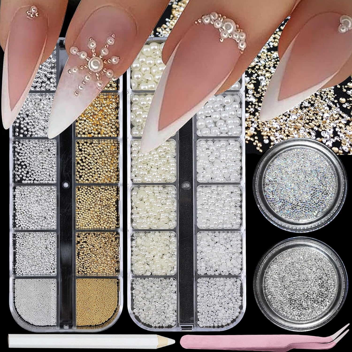 - 【Package Contain】You will receive 2 boxes of different styles of nail pearls and 2 boxes nail rhinestones. Let you complete salon-level manicure at home!