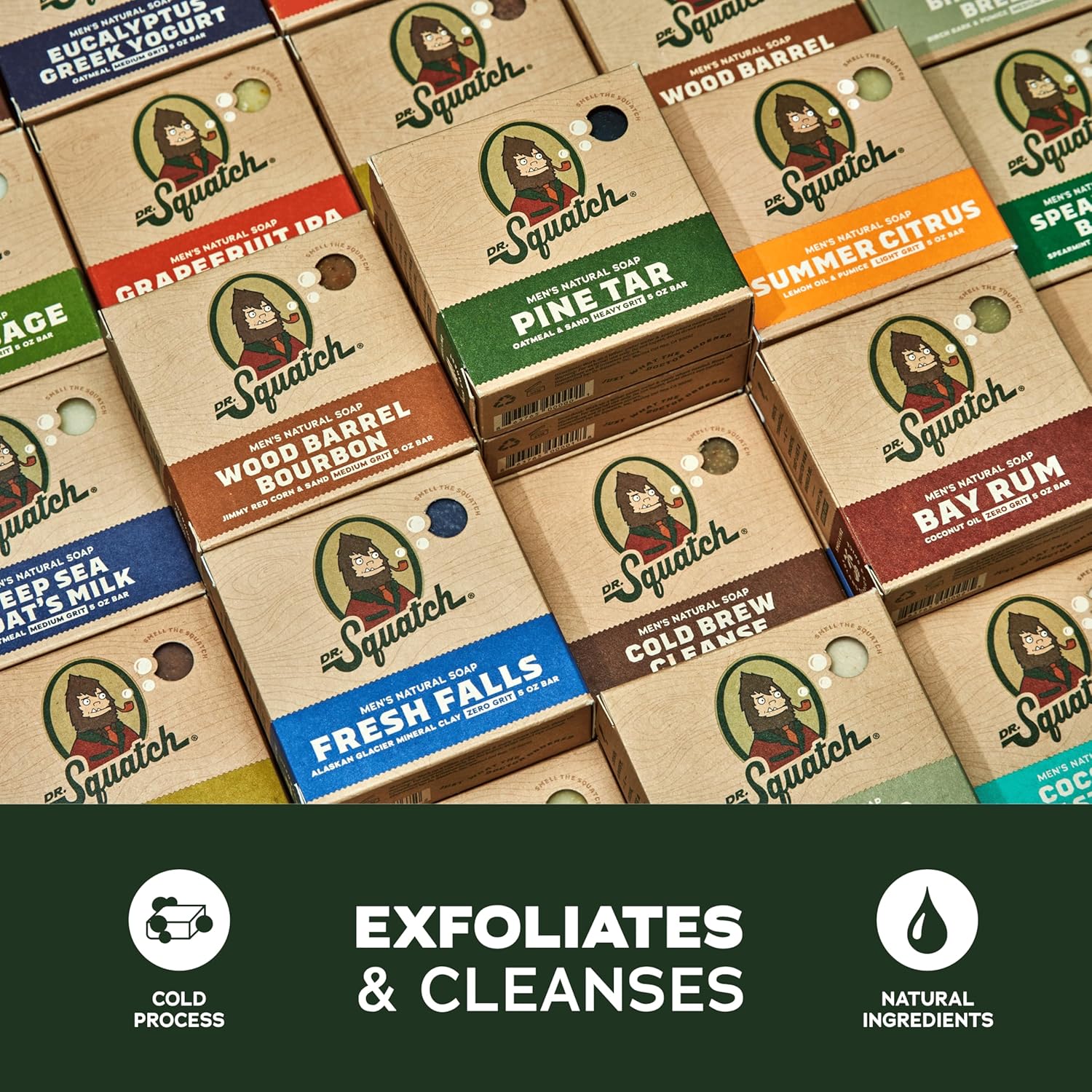 Dr. Squatch Natural Bar Soap for Men - Cold Process Soap with No Harsh Chemicals - Coconut Castaway, Rainforest Rapids, Sierra Storm, Fresh Falls, Coastal Mist (5 oz, 5-Pack)