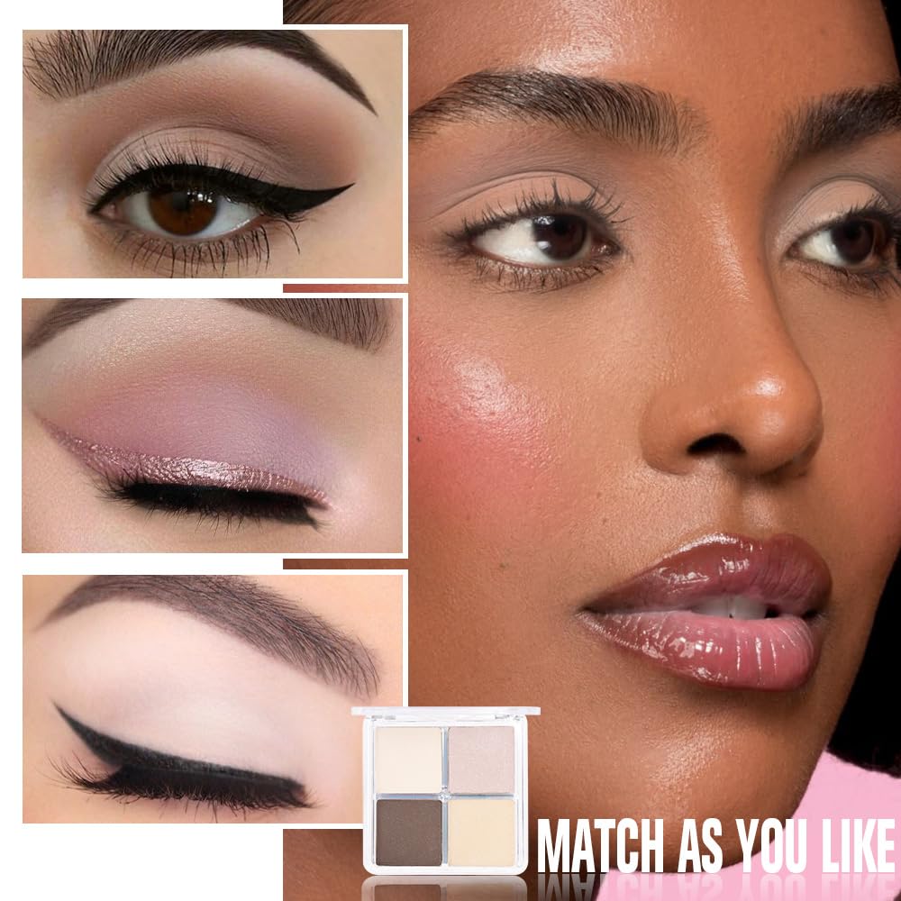 Kaely Powder Eyeshadow Quad, Natural Nude Shimmer Eyeshadow Palette Makeup, Neutral Eye Shadow Palette for Older Women Pigmented Waterproof, sombras para ojos, Blendable, Cruelty-free, 01