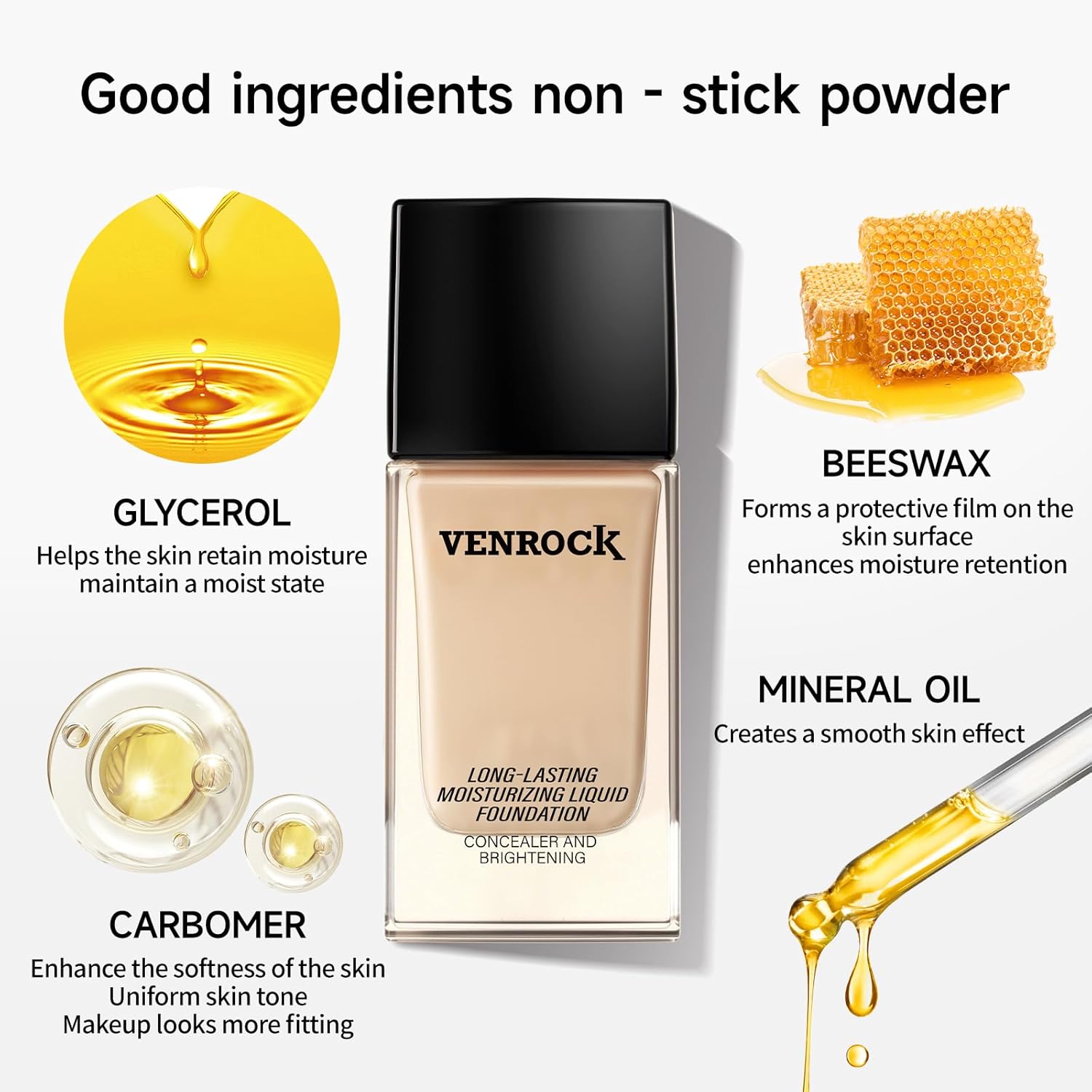 - Moisturizing Formula for All-Day Comfort:Enriched with glycerin (locks in moisture) and beeswax (forms a protective film), our lightweight, non-sticky liquid foundation hydrates dry skin and maintains a comfortable feel from morning to night. Ideal for dry/combination skin.