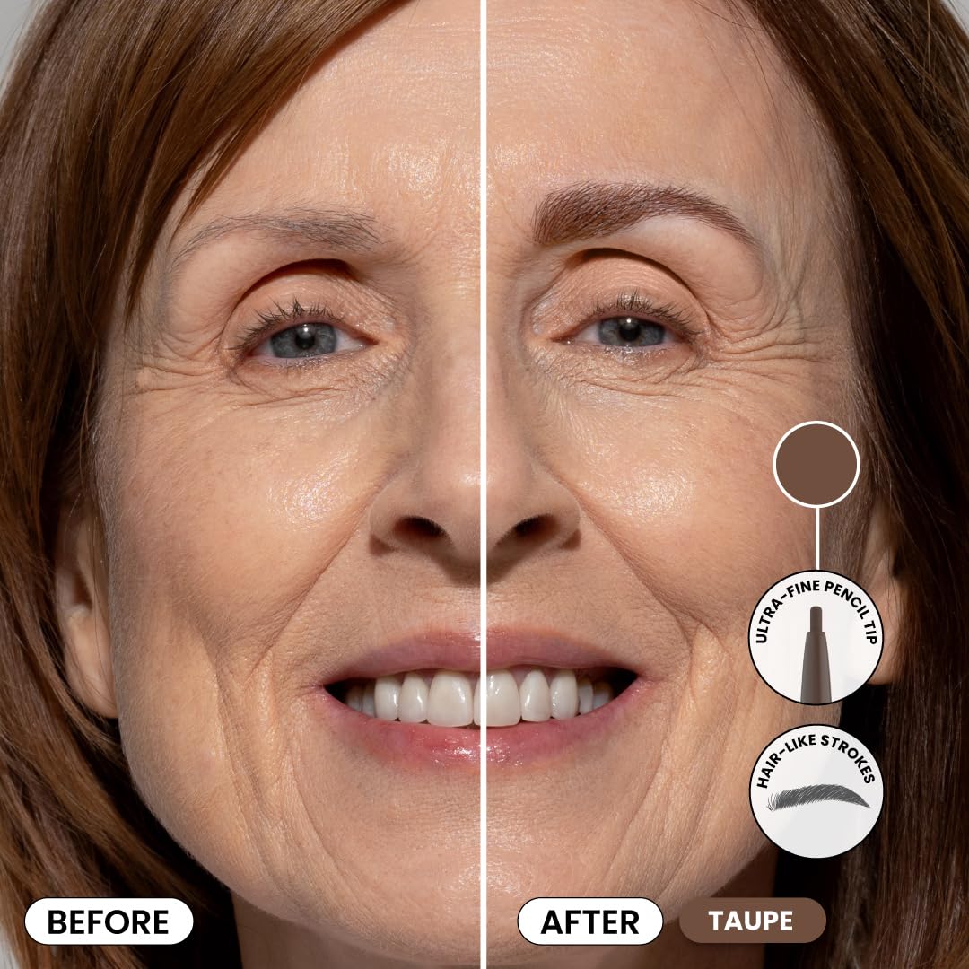 PrimeBrow Pencil for Mature Women – Ultra-Precise Tip for Natural, Hair-Like Strokes – Smudge-Proof & Long-Lasting Wear – Great for Thinning, Sparse, or Graying Brows (Taupe)
