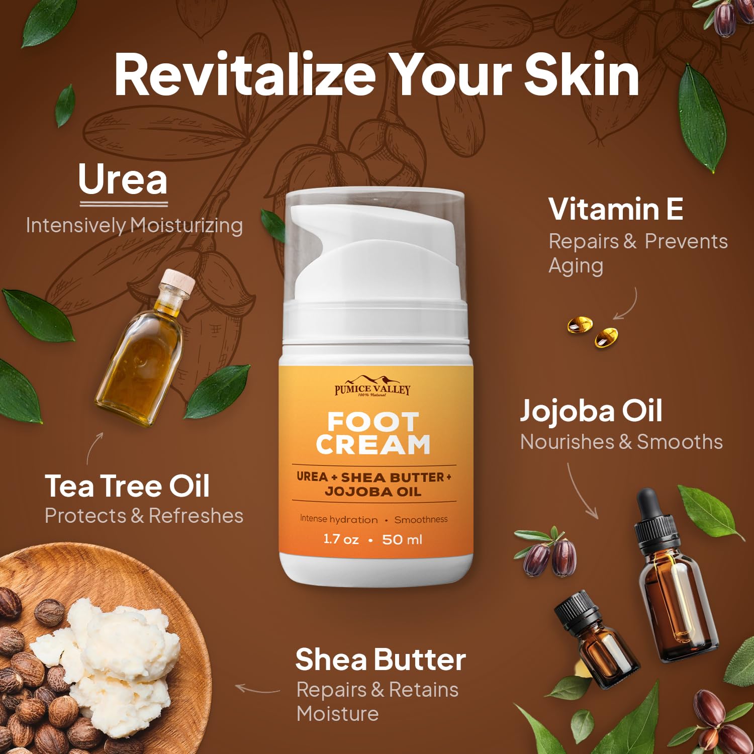Pumice Valley 2 Pack Foot Cream for Dry Cracked Feet and Heels - Natural Moisturizer, Corn, Calluses Treatment - Skin, Body Lotion, Urea, Shea Butter, Jojoba Oil, Vitamin E 1.7 Oz