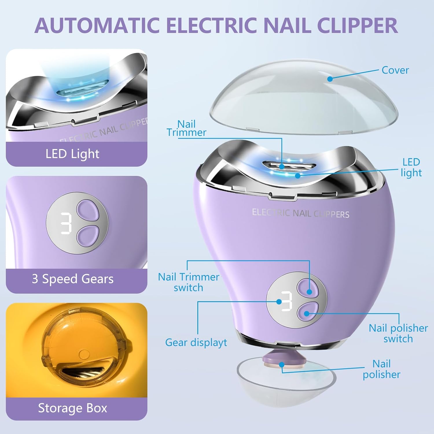 - 𝐀𝐮𝐭𝐨-𝐂𝐥𝐞𝐚𝐧 𝐍𝐚𝐢𝐥 𝐅𝐢𝐥𝐞 𝐚𝐧𝐝 𝐏𝐨𝐥𝐢𝐬𝐡: Enjoy hassle-free maintenance with our automatic nail clipper, complete with a built-in cutter and nail chip storage feature. Say goodbye to messy clean-ups and hello to easy nail care.