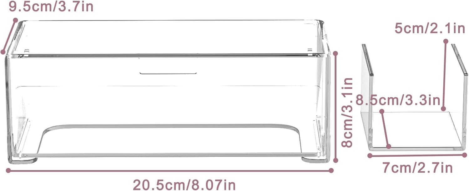 - DESKTOP ORGANIZER WITH DRAWERS: thanks to its two-in-one design, our clear organizer drawers storage box can be used as a drawer box to keep your daily essentials well organized and dustproof, or separated into two open storage holders without lids. This bathroom drawer organizer features a crystal clear body with a sleek cover for easy access and placing the items without obstruction
