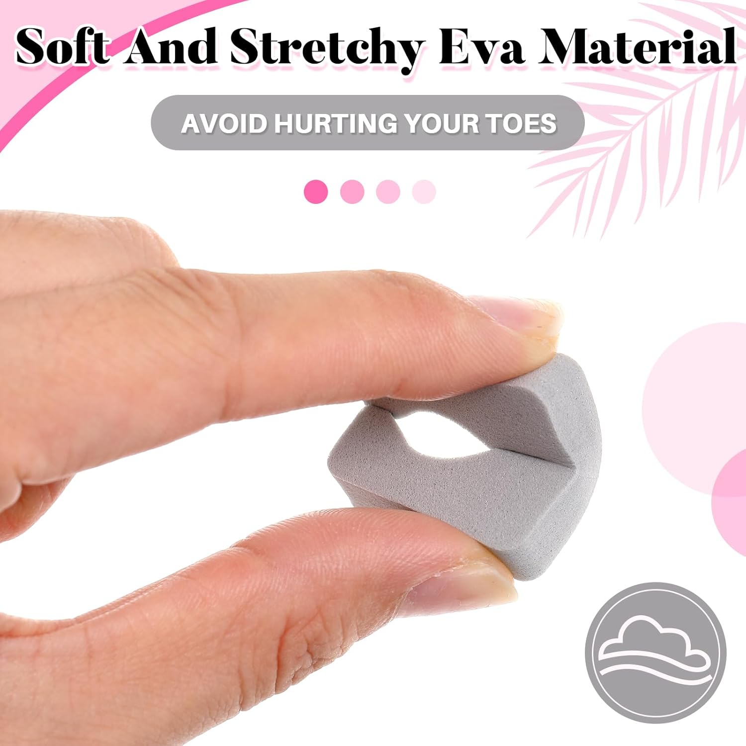 - The Delightful Blend of Practicality and Cosiness: made from soft, quality EVA foam, these toe separators for pedicure bulk provide a comfortable fit; Measuring approximately 1.1 x 1.1 x 0.28 inches/ 28 x 28 x 7 mm, they effortlessly snug into place between toes, providing the allowance for nail polish application and other pedicure procedures