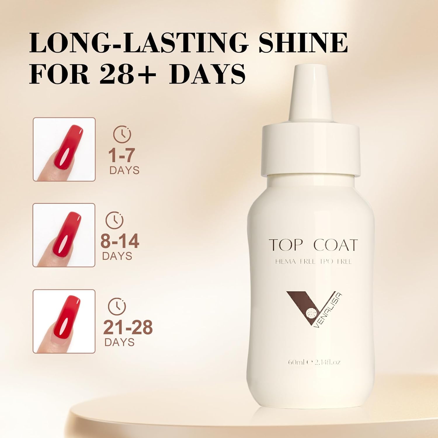 VENALISA 60 ML No Wipe Gel Top Coat- High Gloss Shiny Long Lasting Top Coat Clear Gel Nail Polish, Soak Off Nail Art Home and Professional Manicure