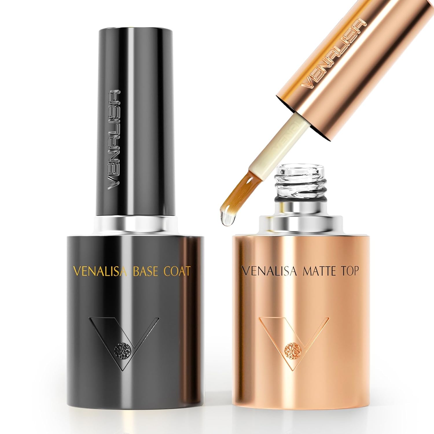 VENALISA 2 Pcs No Wipe Matte Gel Top Coat and Base Coat Set- Matte Top Coat Gel Nail Polish Kit, Soak Off Nail Art Home and Professional Manicure