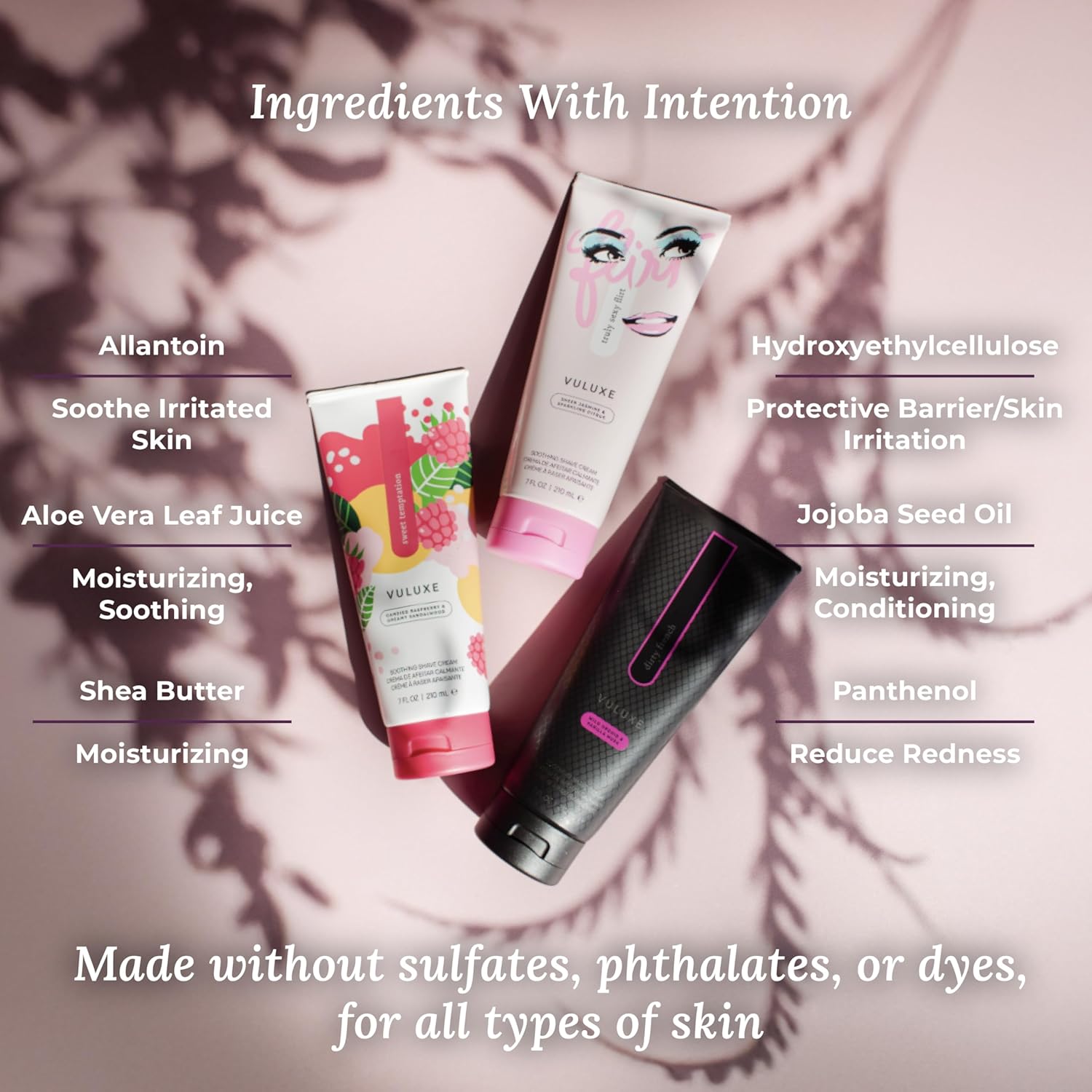 - Introducing Vuluxe Soothing Shave Cream - This foaming formula helps prevent razor bumps and irritation with a powerful combination of ultra-hydrating ingredients like shea butter, jojoba oil, aloe vera, and oat extract.