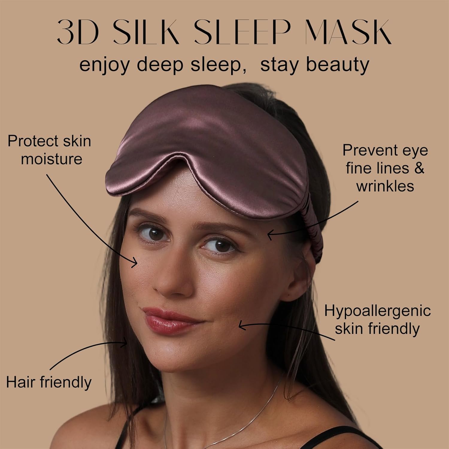 - ✅3D Contoured Design, Comfortable Fit: Features an ergonomic 3D contoured design that perfectly fits the contours of your face, no pressure on the eyes or nose, silk sleep mask provides a barely-there feel.