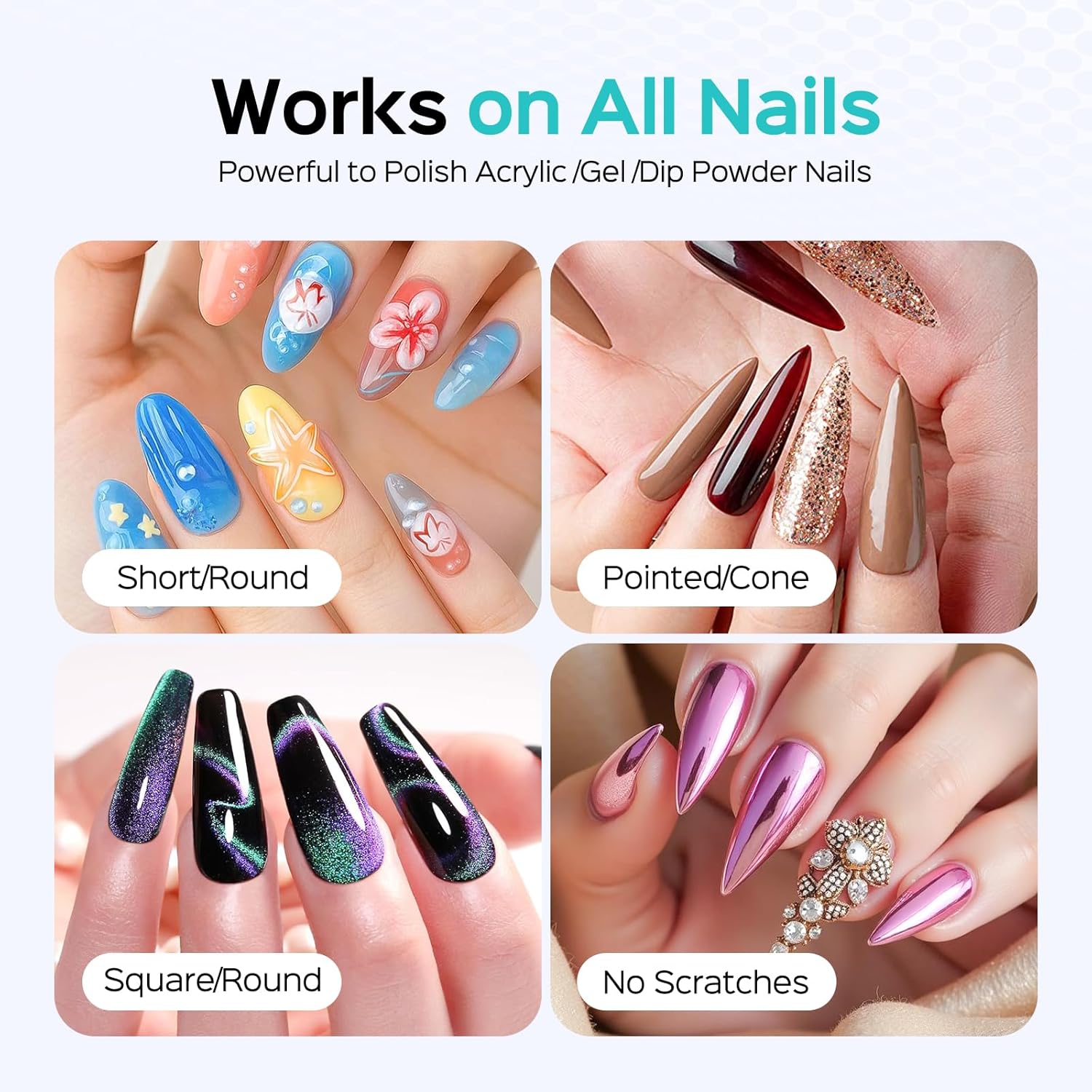 - All-in-One Nail Solution for Home & Salon:Handles natural nails, acrylics, gel polish, nail stickers, crystals, rough edges, cuticles, calluses, and thick nails with ease. Ideal for home DIY, salon prep, party-ready looks, travel touch-ups, and regular nail care—its versatility and premium design make it a thoughtful option to share with someone who values well-groomed nails.