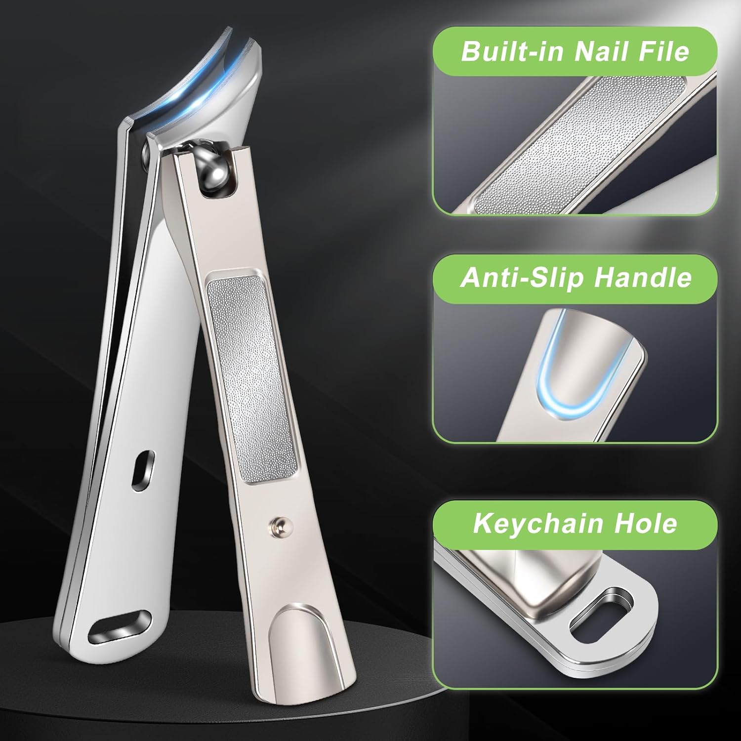 - CAREFULLY CRAFTED DESIGN: Featuring a non-slip handle for a secure, comfortable grip, the heavy duty nail clippers for thick nails provides stability during use. The built-in nail file ensures a polished finish right after trimming, offering convenience and precision.