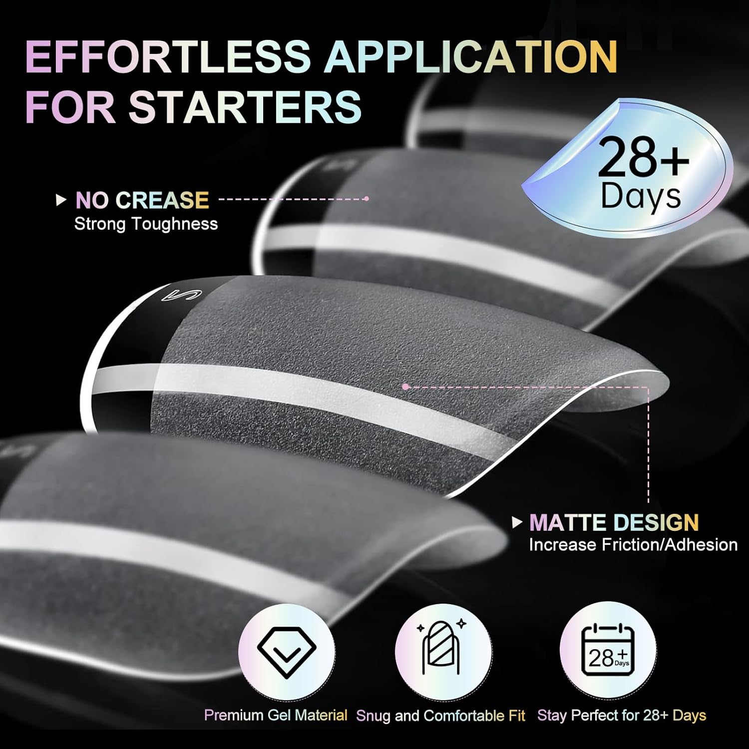 - 【Lightweight & Comfortable for All-Day Wear】Made from high-quality soft gel, these tips are lightweight, flexible, and durable, offering all-day comfort without any tightness or discomfort. Perfect for typing, cooking, or dancing the night away. The textured surface enhances glue adhesion, ensuring a secure hold for up to 28+ days