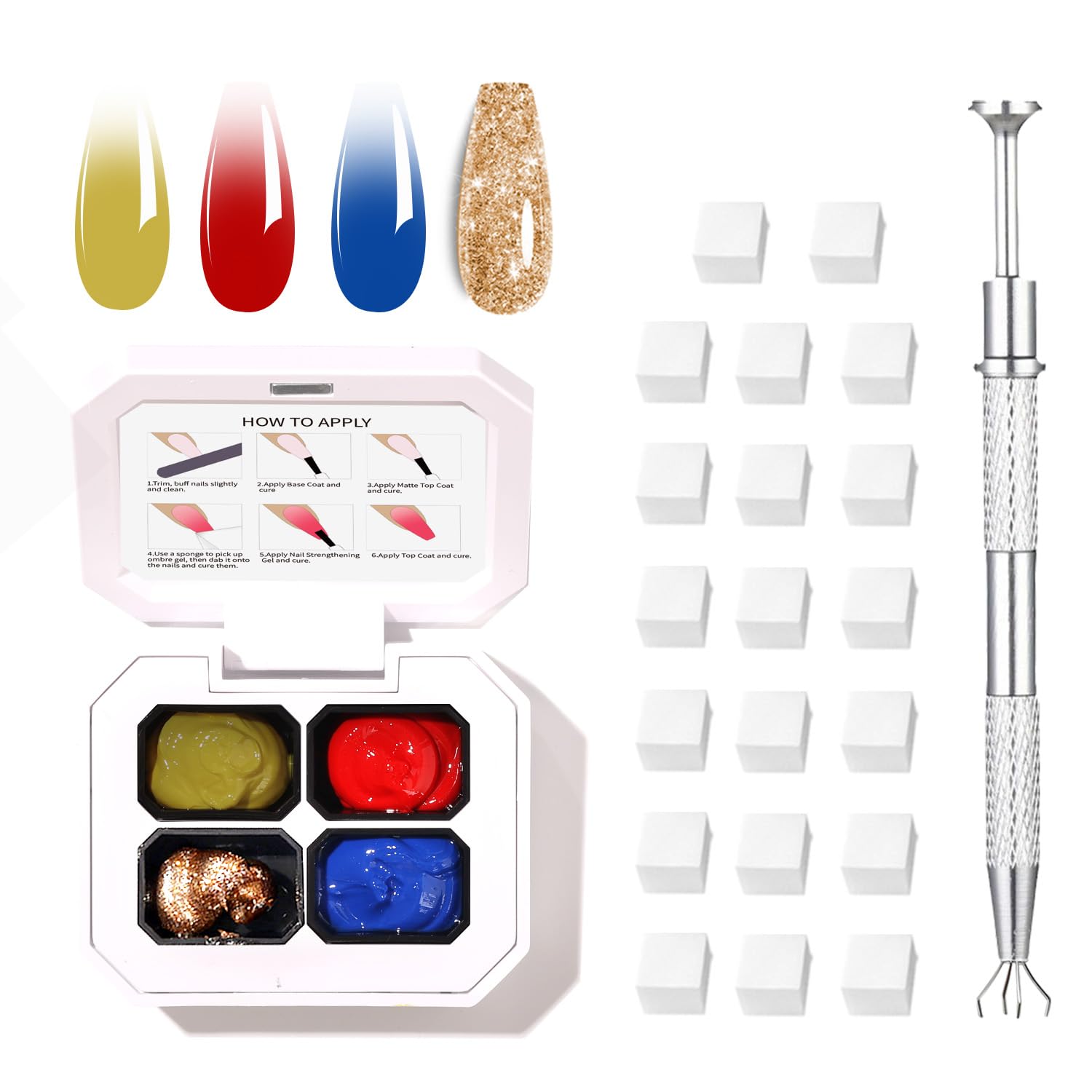 - Finger Secret Ombre Gel:The 4 colors set ombre gel meets the nail art needs of different seasons and scenarios. Moreover, the ombre gel nail polish set is lightweight and portable, allowing you to have shiny nail art all the time.