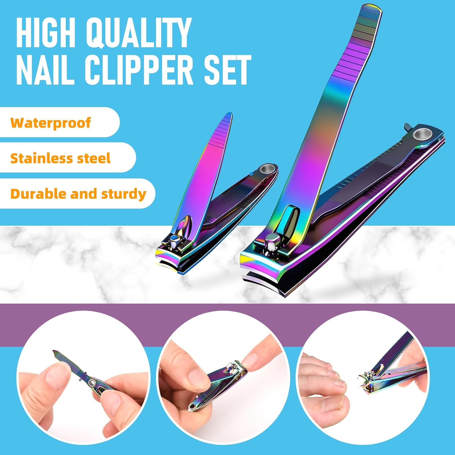 Nail Clipper Set, Sturdy Stainless Steel Fingernails & Toenails Clippers & Nail File, Sharp Effortless Fingernail Toenail Trimmer, Portable Nail Cutter for Women Men(Rainbow)