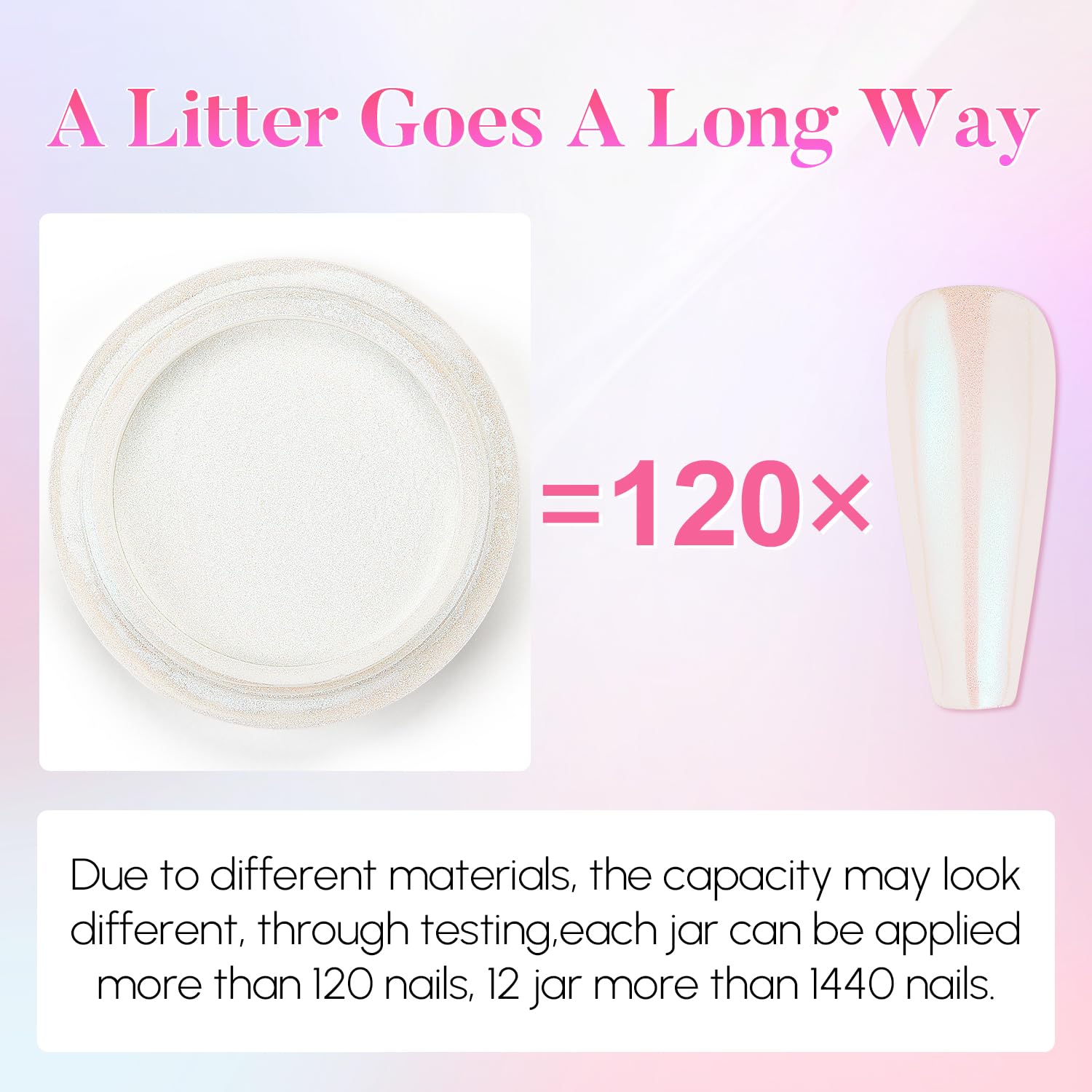 AIMEILI Pearl Nail Powder, Vegan, Cruelty Free, 12 Colors Chrome Aurora Metallic Holographic Mirror Effect Nail Art Pigment Iridescent Shell Glitter Nail Art