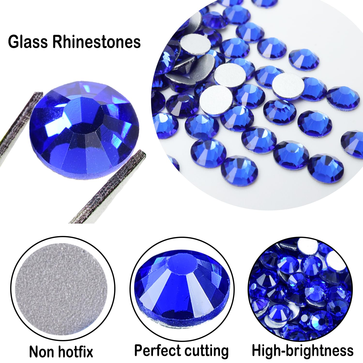 Flatback Glass Rhinestones,Bedazzler Gems 288pcs Non Hotfix Crystal Rhinestones for Nail Charms Crafts Clothes Tumblers,Sapphire,SS30