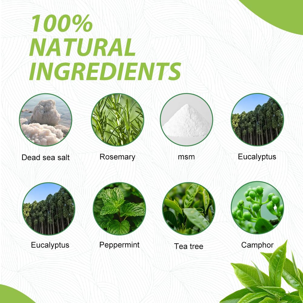 - This mild and non-irritating foot care salt is made from natural organic ingredients: Sodium sulfate, Tea tree, Dead sea salt, Rosemary, MSM, Mint, Eucalyptus, Chamomile