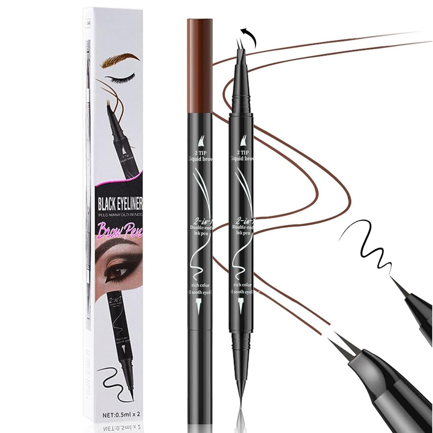 - 【Dual - Function Design】This 2 - in - 1 eyebrow pen combines the functions of an eyebrow pencil and an eyeliner. It saves you both time and money, as you no longer need to purchase two separate products. You can create a well - defined brow shape and a precise eyeliner look,offering you a complete eye - makeup solution in one convenient package. No more rummaging through your makeup bag for multiple products. Streamline your makeup routine with this all - in - one set with just one compact item, making it perfect for on - the - go touch - ups and travel.